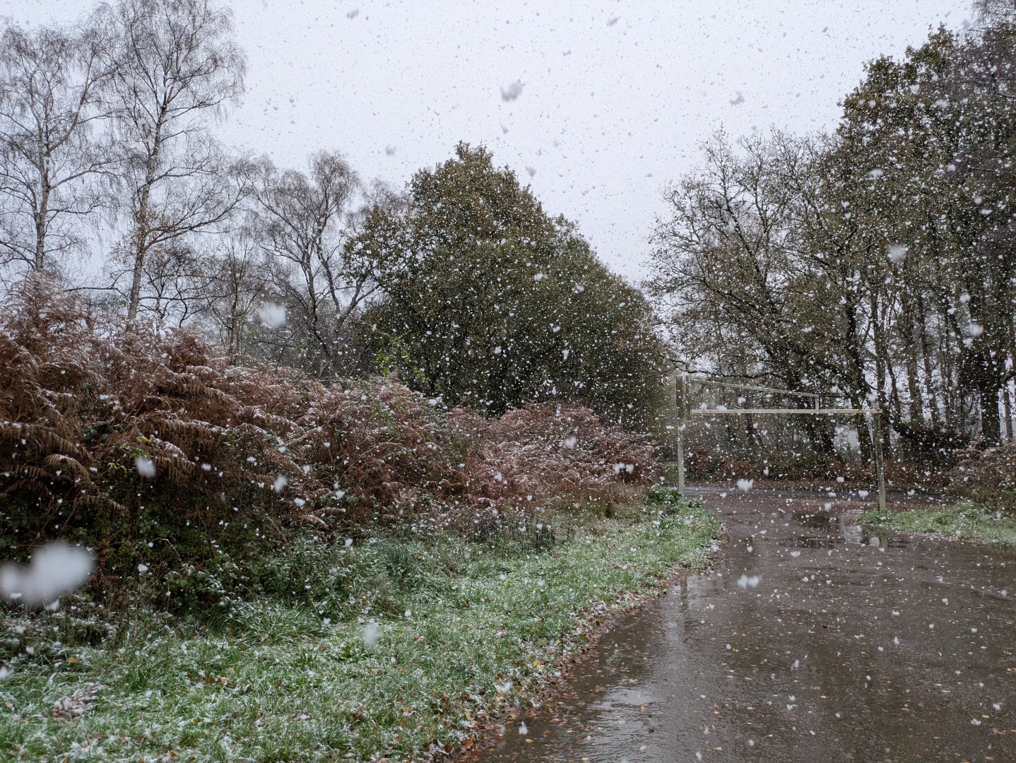 Arriving at Iping Common car park we huddled in our cars hoping that either the snow would stop or Isabel was going to change the walk to many, many circuits of the bar at the Hamilton Arms before lunch. However, after girding our loins, finding our umbrellas and dressing appropriately, we embarked on our walk. In the event the snow stopped in less than half an hour, so we had made the right decision, although it was replaced later by some rain. After taking the Serpent Trail over Stedham Common, we headed for Woolmer Bridge but then headed south for Quags Corner near Minsted - not to be confused with the Quags Corner near Horsham. Quag is an archaic term for a marsh or bog, but in spite of the earlier snow we found it reasonably easy walking. We then followed the fence shielding us from the extensive sandpit on Mitchells Common and eventually emerged at Fitzhill where we could see snow had settled on Harting Down. A field with a few horses in it showed no sign of snow but the horses looked cold and damp and disappointed we had no food for them! After crossing the Elsted road we soon found a suitable stopping point for a drinks break. Suitably refreshed, we skirted the edge of Trotton Common before eventually turning east and then reaching Iping Common and our parked cars. In spite of the weather we found the walk very rewarding. After a short drive to The Halmilton Arms anyone suffering from the cold weather soon warmed up and we all had some delicious Thai food from the extensive menu.