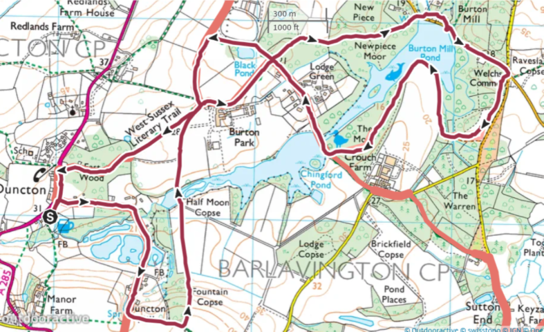 The first stop was Duncton Mill Fishery and its 4 fishing lakes. The nursery lake was stocked with Trout and recent scrub clearance gave us a good view of the old water wheel. From the fishery we headed up to Fountain Copse and made our way to Burton Park with its 19th century Greek inspired country house and Norman church. Burton Park Estate, which dates from the 13th Century and the Grade 1 listed mansion has a chequered history. Once home to a Baronet, then an MP, it became an Army Camp, a girls school, a police dog-training centre and is now split into flats. Then it was onwards to Burton Mill and Burton Mill pond where we stopped for coffee before completing a loop of the pond and heading back via the West Sussex Literary Trail to the Cricketers where we enjoyed a nice lunch.