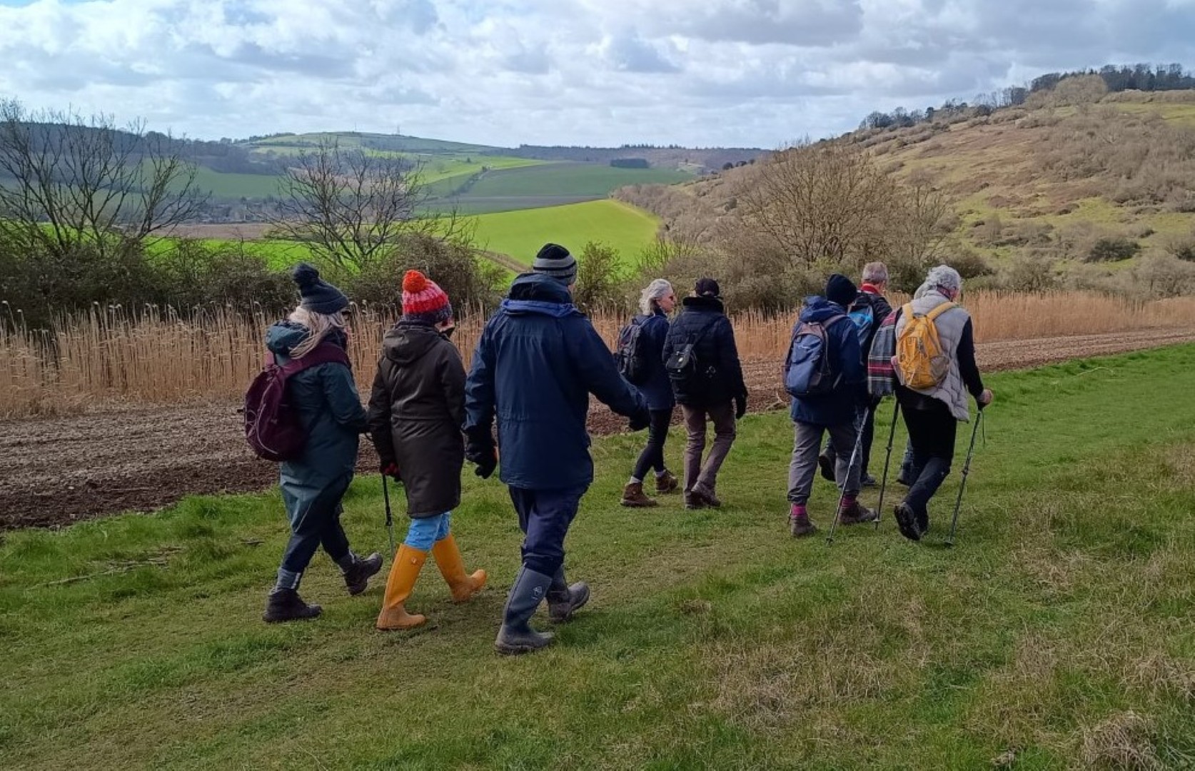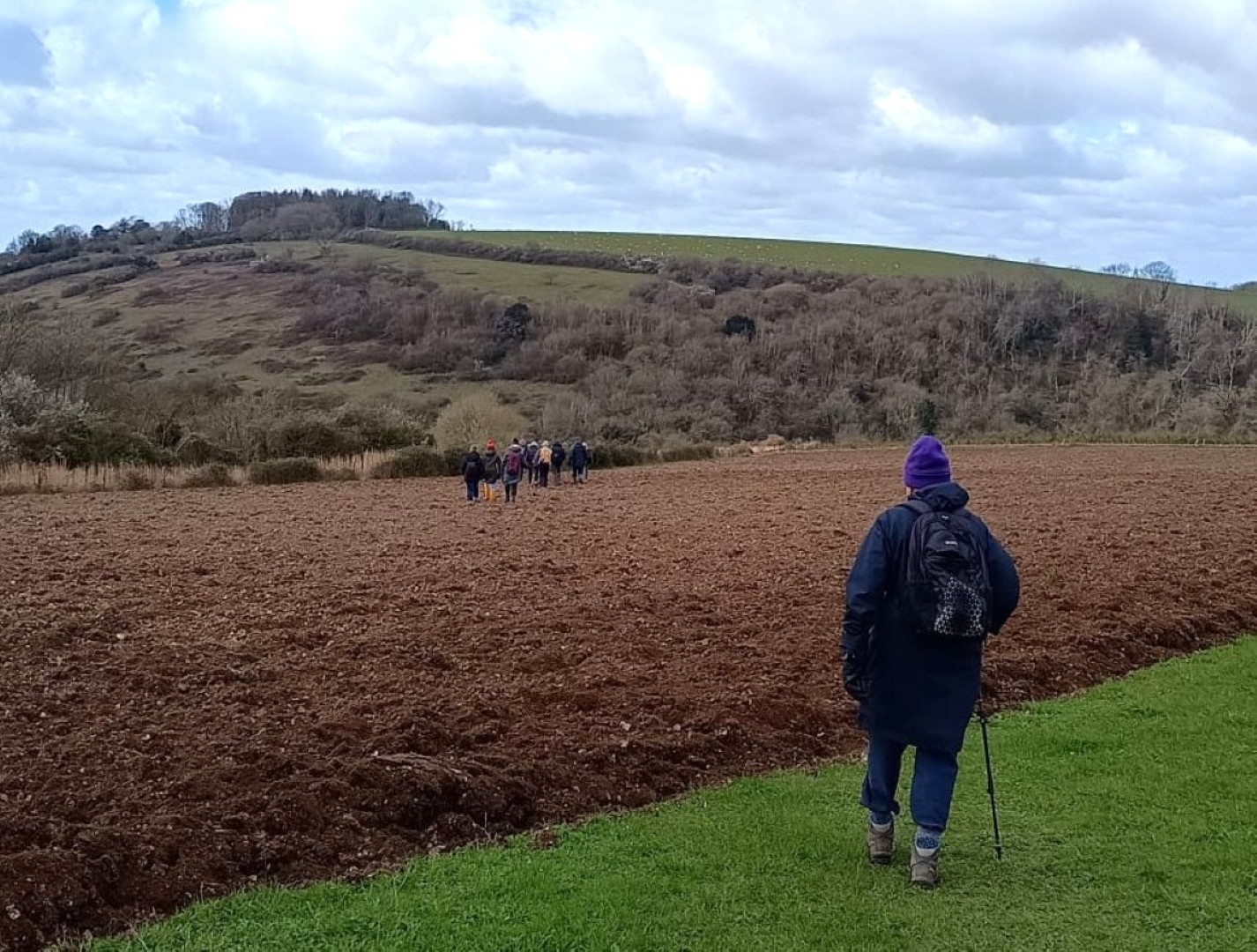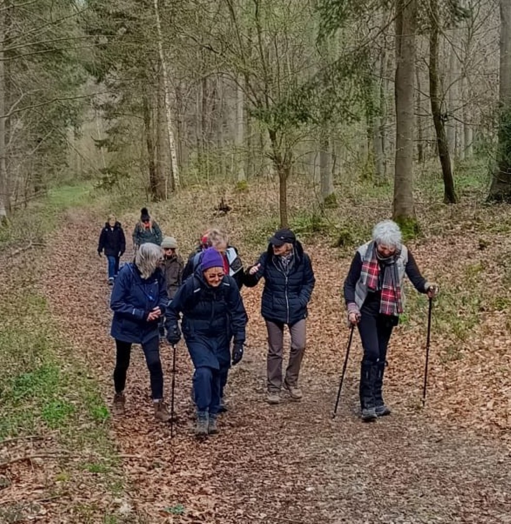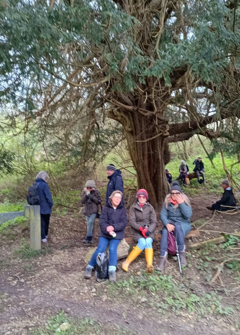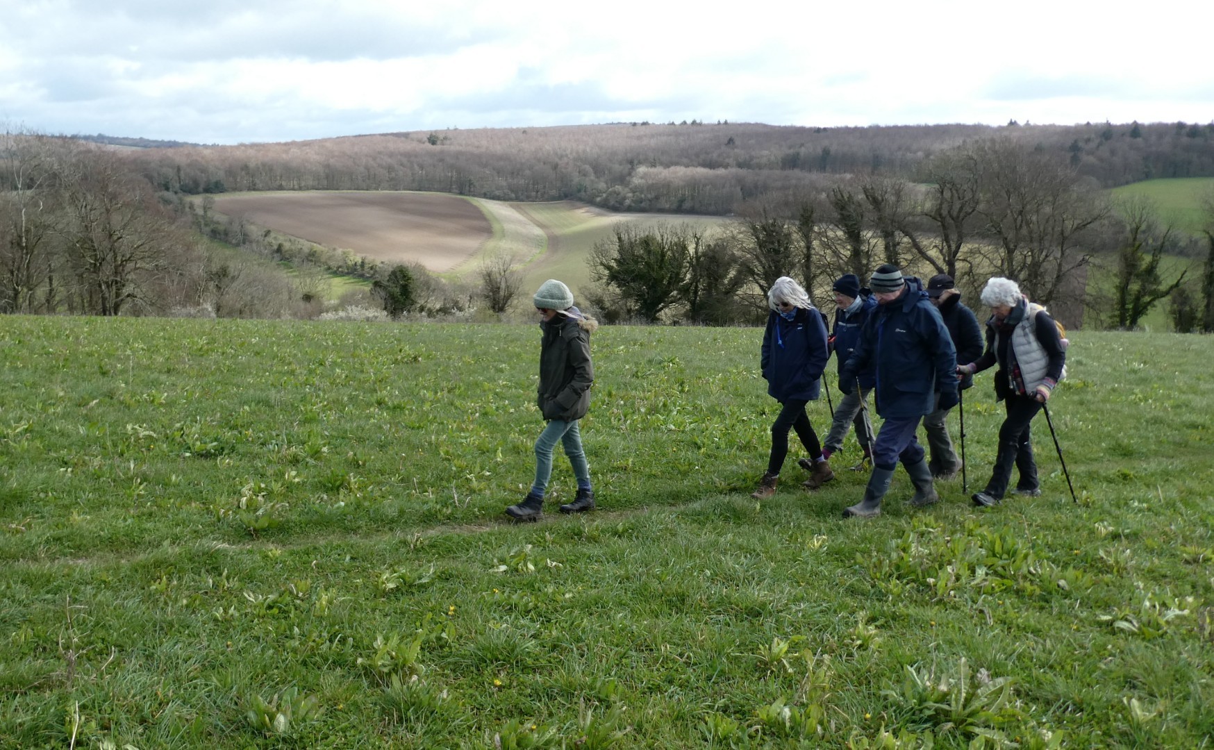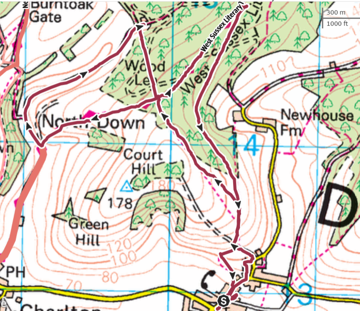 Despite some rain early in the morning, no rain fell on Jennifer's walkers as they climbed up and down around the Charlton Forest and Eastdean Woods. After gathering together at the Star and Garter and placing our food orders, we walked past All Saints Church and headed uphill towards Court Hill. After a short diversion into Wood Lea we emerged taking the footpath down North Down. It wasn't all that easy to follow as a tractor was busy chewing up the whole hillside but we found our way eventually down into North Lane and up to our coffee stop at the base of Wood Lea. When sufficiently refreshed we climbed up into Wood Lea and turned north along the West Sussex Literary Trail. This trail from Horsham to Chichester lets you walk in the footsteps of Shelley, Belloc, Blake, Keats and Galsworthy but is not guaranteed to improve your English! After 1/2 a mile we turned sharply south and headed back to the Star and Garter for a very welcome lunch. The walk was about 5.3 miles