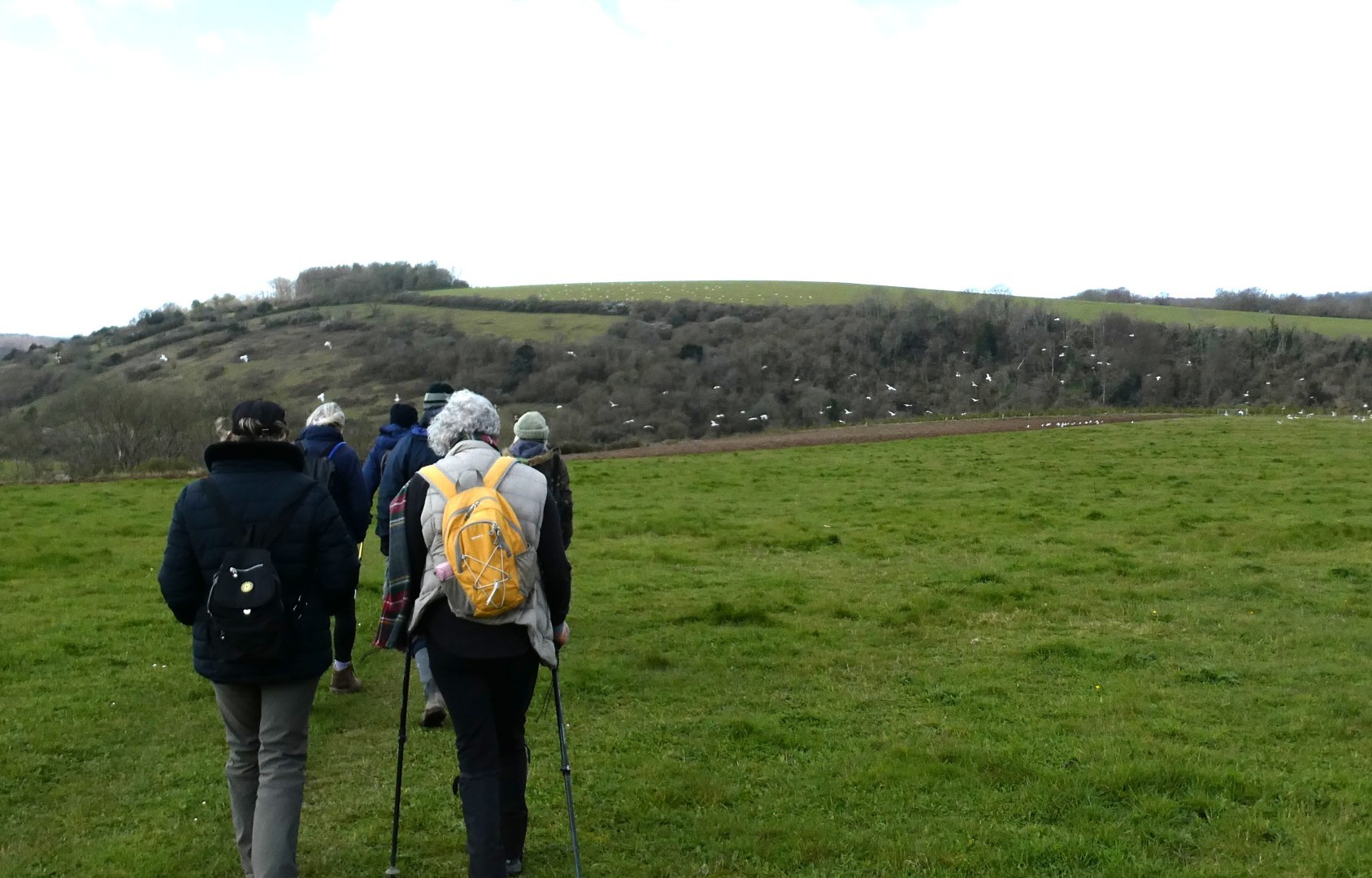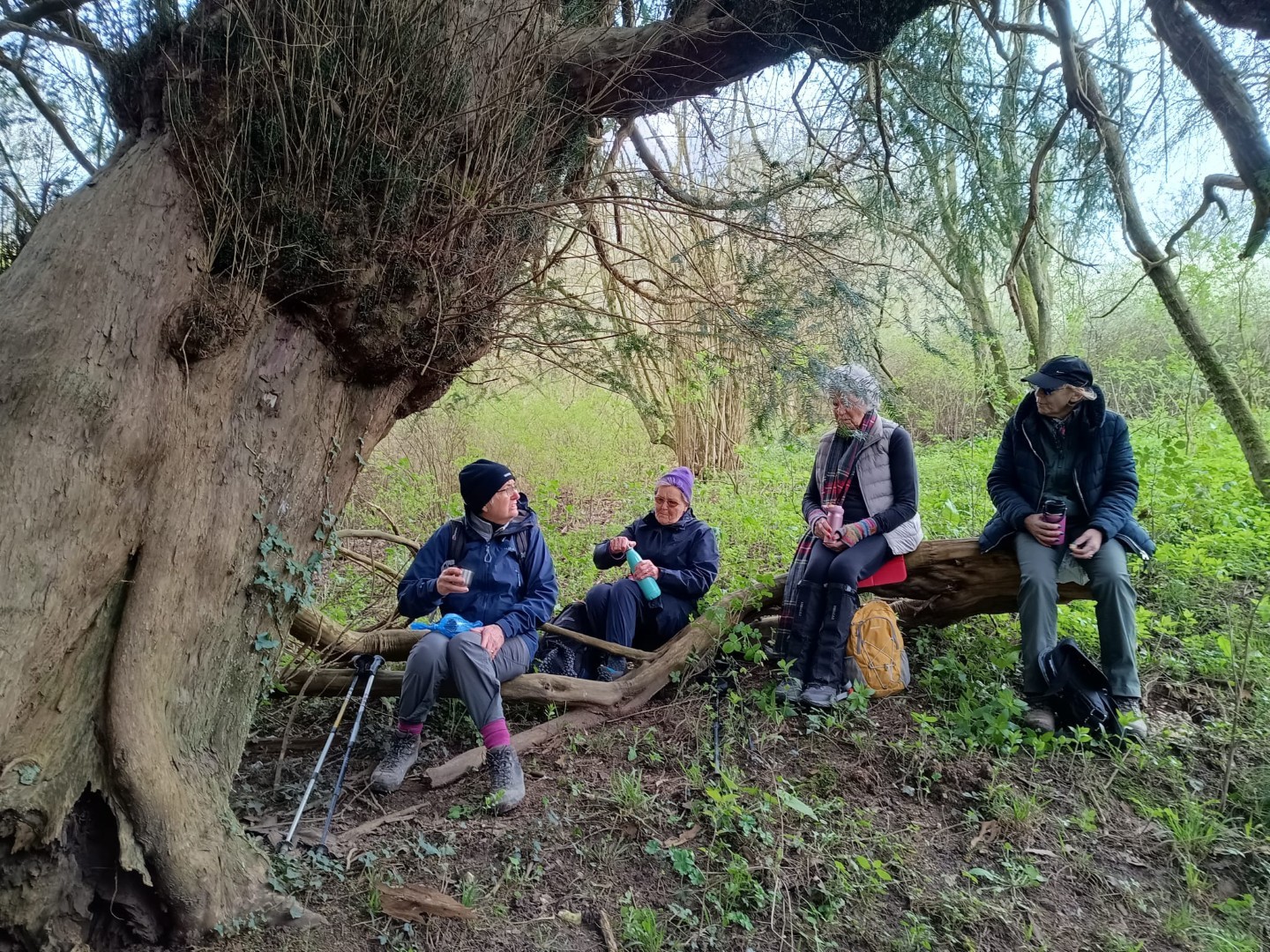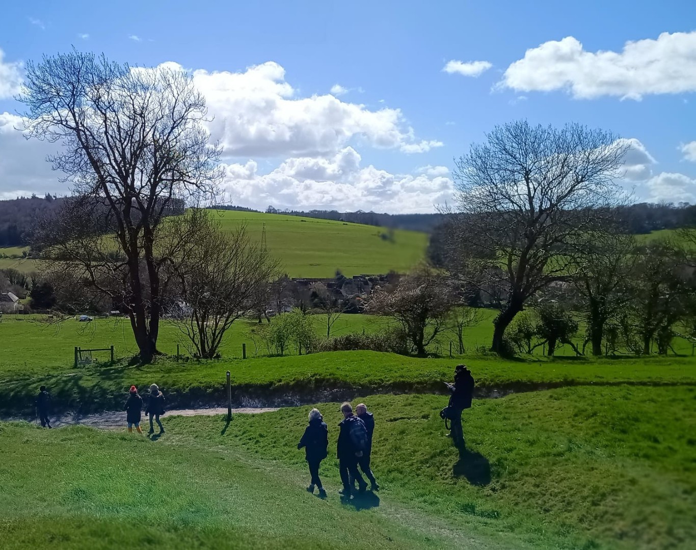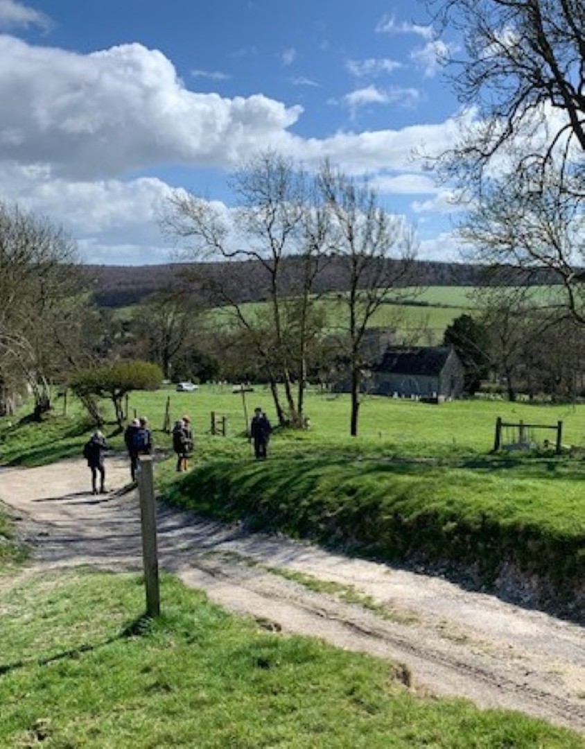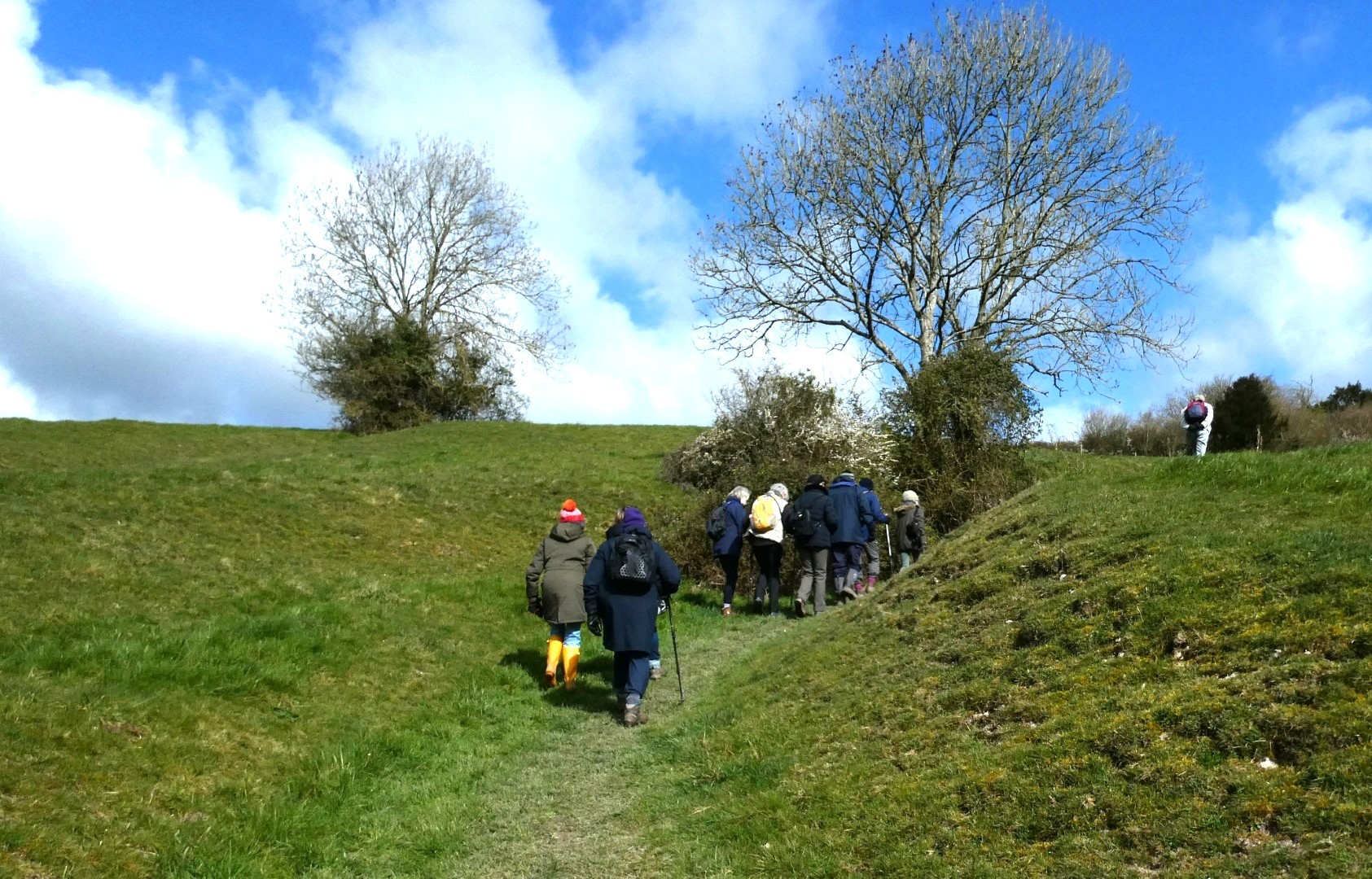 Despite some rain early in the morning, no rain fell on Jennifer's walkers as they climbed up and down around the Charlton Forest and Eastdean Woods. After gathering together at the Star and Garter and placing our food orders, we walked past All Saints Church and headed uphill towards Court Hill. After a short diversion into Wood Lea we emerged taking the footpath down North Down. It wasn't all that easy to follow as a tractor was busy chewing up the whole hillside but we found our way eventually down into North Lane and up to our coffee stop at the base of Wood Lea. When sufficiently refreshed we climbed up into Wood Lea and turned north along the West Sussex Literary Trail. This trail from Horsham to Chichester lets you walk in the footsteps of Shelley, Belloc, Blake, Keats and Galsworthy but is not guaranteed to improve your English! After 1/2 a mile we turned sharply south and headed back to the Star and Garter for a very welcome lunch. The walk was about 5.3 miles