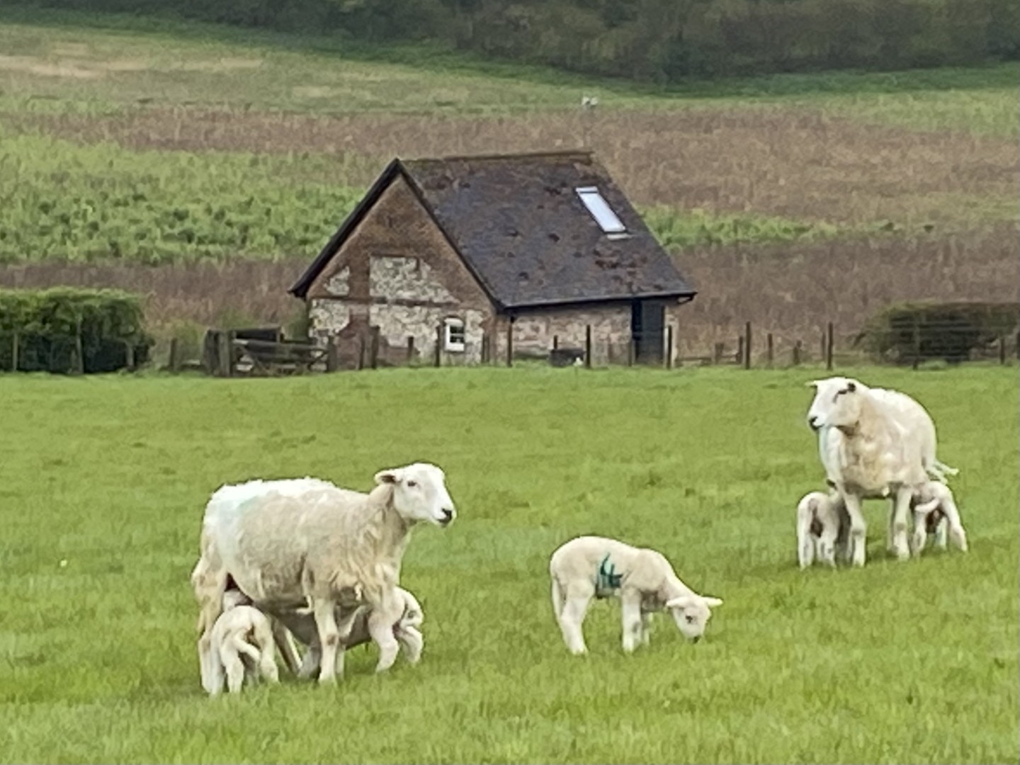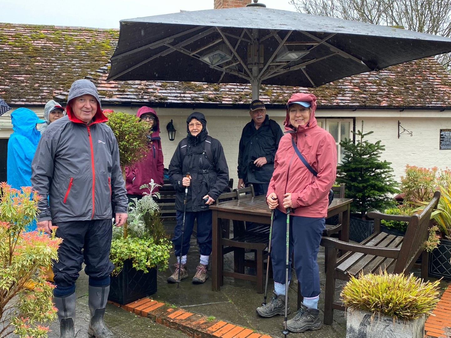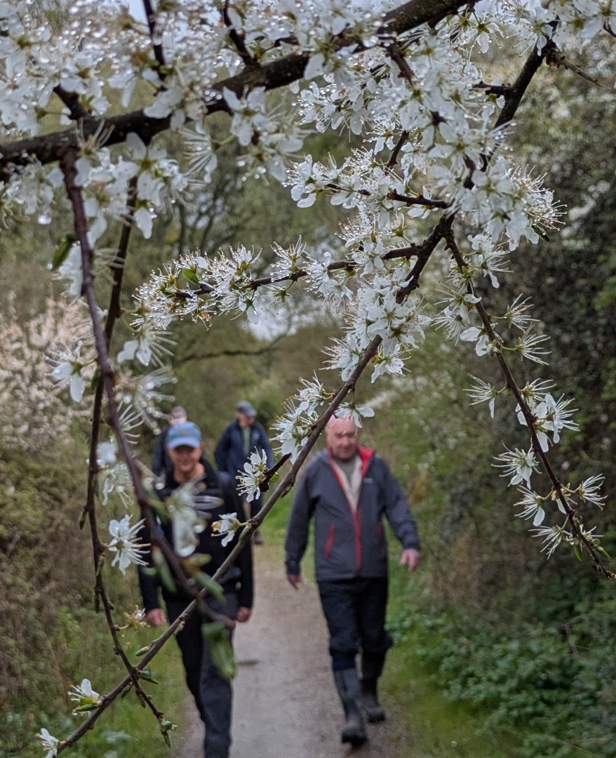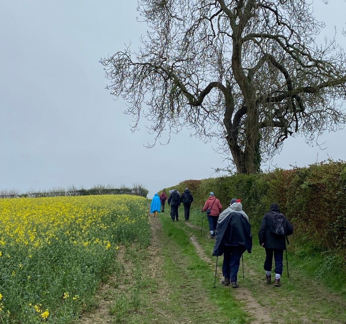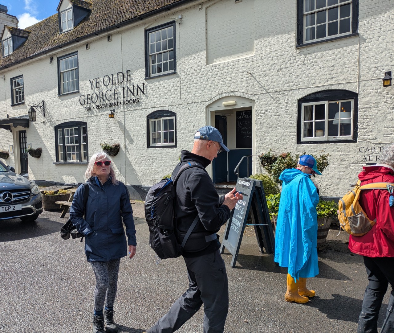 The weather was definitely not looking good for the start of Tim and Jane's walk around East Meon. Rain was very much in the air but by the time we had pre-ordered our food the drizzle was fading away and we headed to the south of the village, passing the school on the way. Duncoombe Farm proved to be the birthplace of many lambs and several set of triplets were in evidence. We then had to tackle the very lowest slope of Small Down, just as well as Small Down is in fact fairly large. Carefully avoiding a path that went a lot higher, we descended back down and were back at the level of the valley that the village nestled in. We then had some road work before reaching the Parsonage Farm area. After taking the path past Fishpond Cottages and despite a lot of searching we failed to find a coffee stop until we were halfway up Cumber's Lane. Even then we were forced to sit on the bank, but at least we had a pleasant drink! Suitably refreshed we took the path through Greenway Copse and on to the the outskirts of the village. East Meon is a very old settlement and some Hall Houses are still standing but fortunately the original design with a single fire and hole in the roof to let the smoke out has been very much improved over the years. A wander down the High Street and we were soon back in Ye Olde George Inn for a very good lunch.