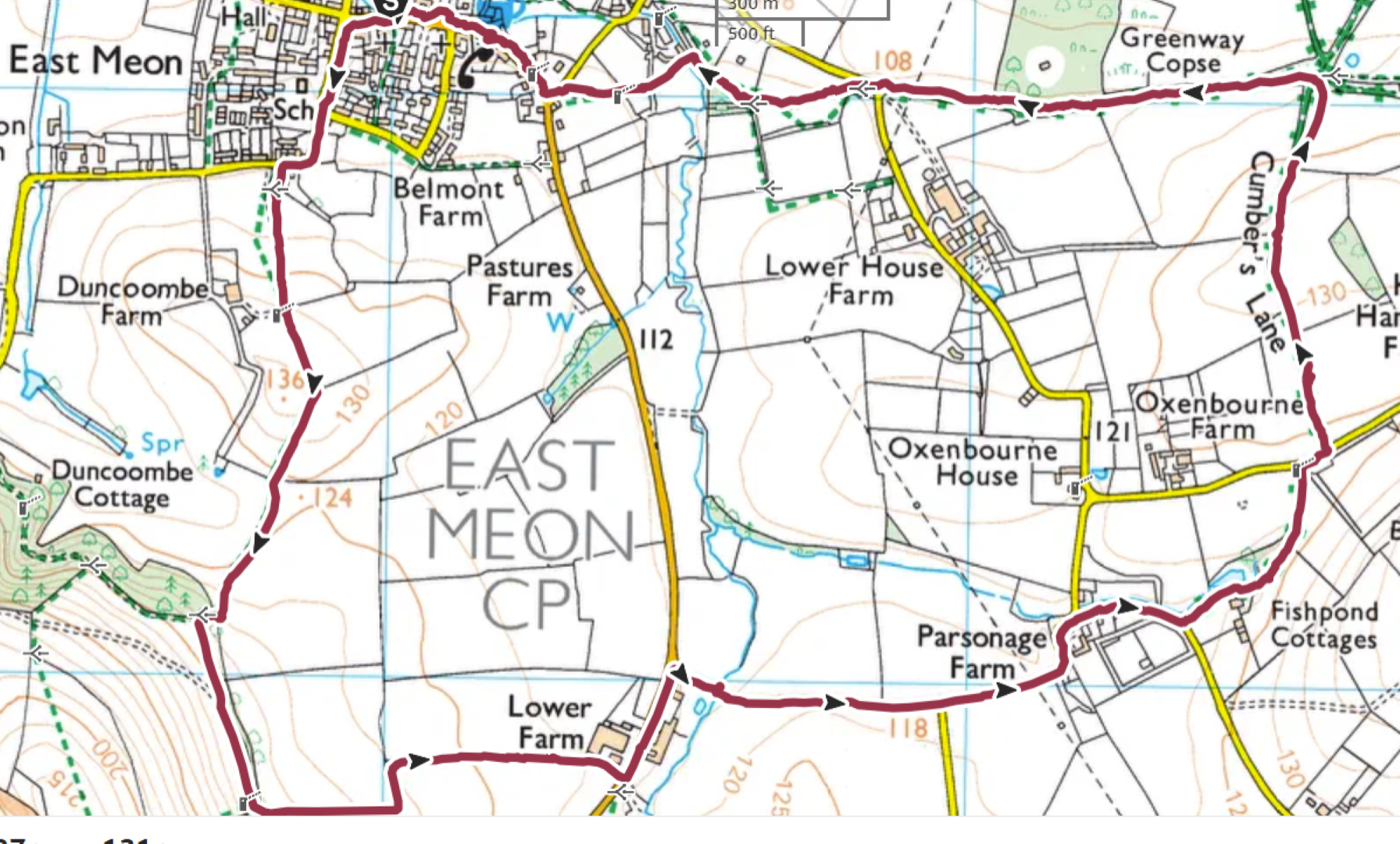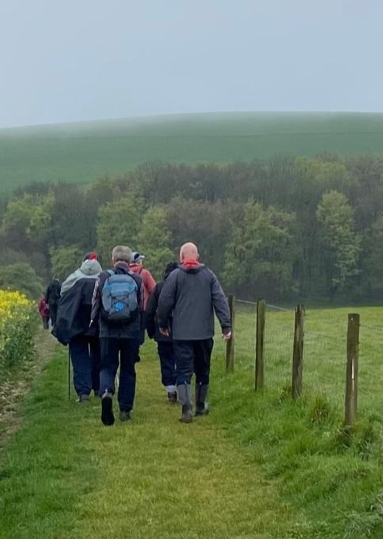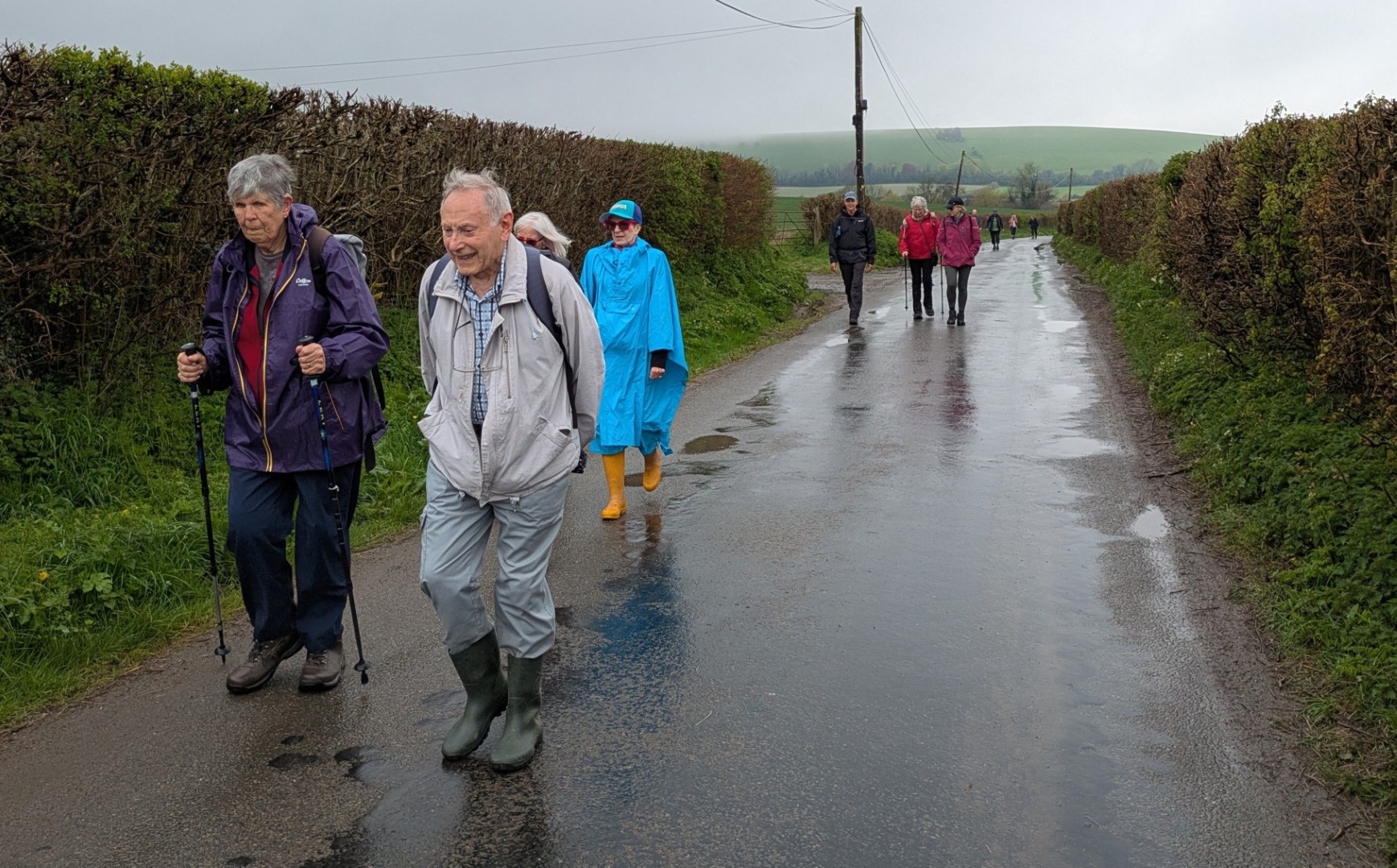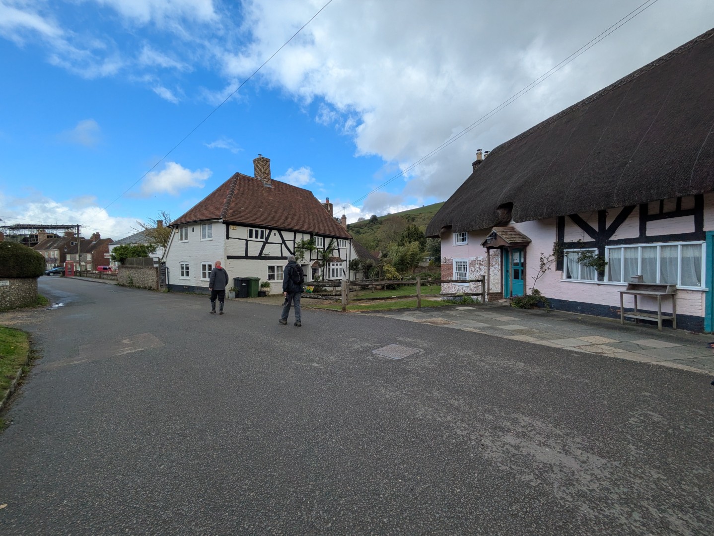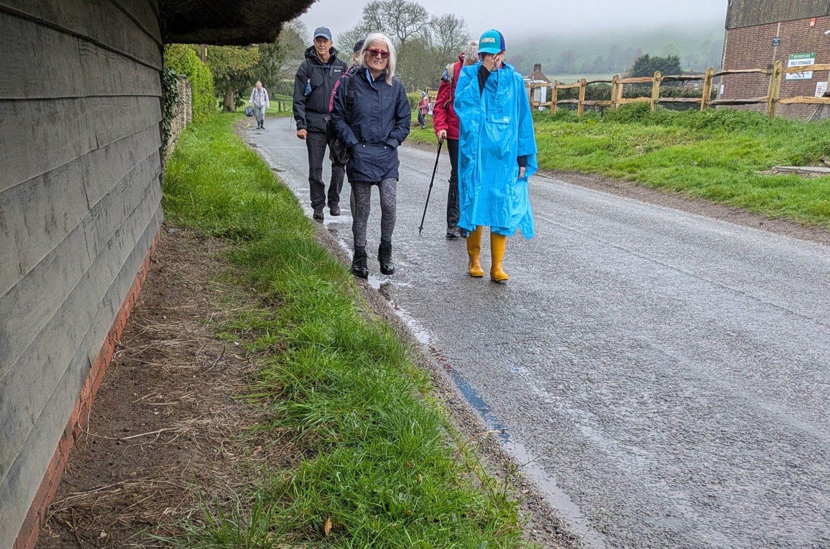 The weather was definitely not looking good for the start of Tim and Jane's walk around East Meon. Rain was very much in the air but by the time we had pre-ordered our food the drizzle was fading away and we headed to the south of the village, passing the school on the way. Duncoombe Farm proved to be the birthplace of many lambs and several set of triplets were in evidence. We then had to tackle the very lowest slope of Small Down, just as well as Small Down is in fact fairly large. Carefully avoiding a path that went a lot higher, we descended back down and were back at the level of the valley that the village nestled in. We then had some road work before reaching the Parsonage Farm area. After taking the path past Fishpond Cottages and despite a lot of searching we failed to find a coffee stop until we were halfway up Cumber's Lane. Even then we were forced to sit on the bank, but at least we had a pleasant drink! Suitably refreshed we took the path through Greenway Copse and on to the the outskirts of the village. East Meon is a very old settlement and some Hall Houses are still standing but fortunately the original design with a single fire and hole in the roof to let the smoke out has been very much improved over the years. A wander down the High Street and we were soon back in Ye Olde George Inn for a very good lunch.