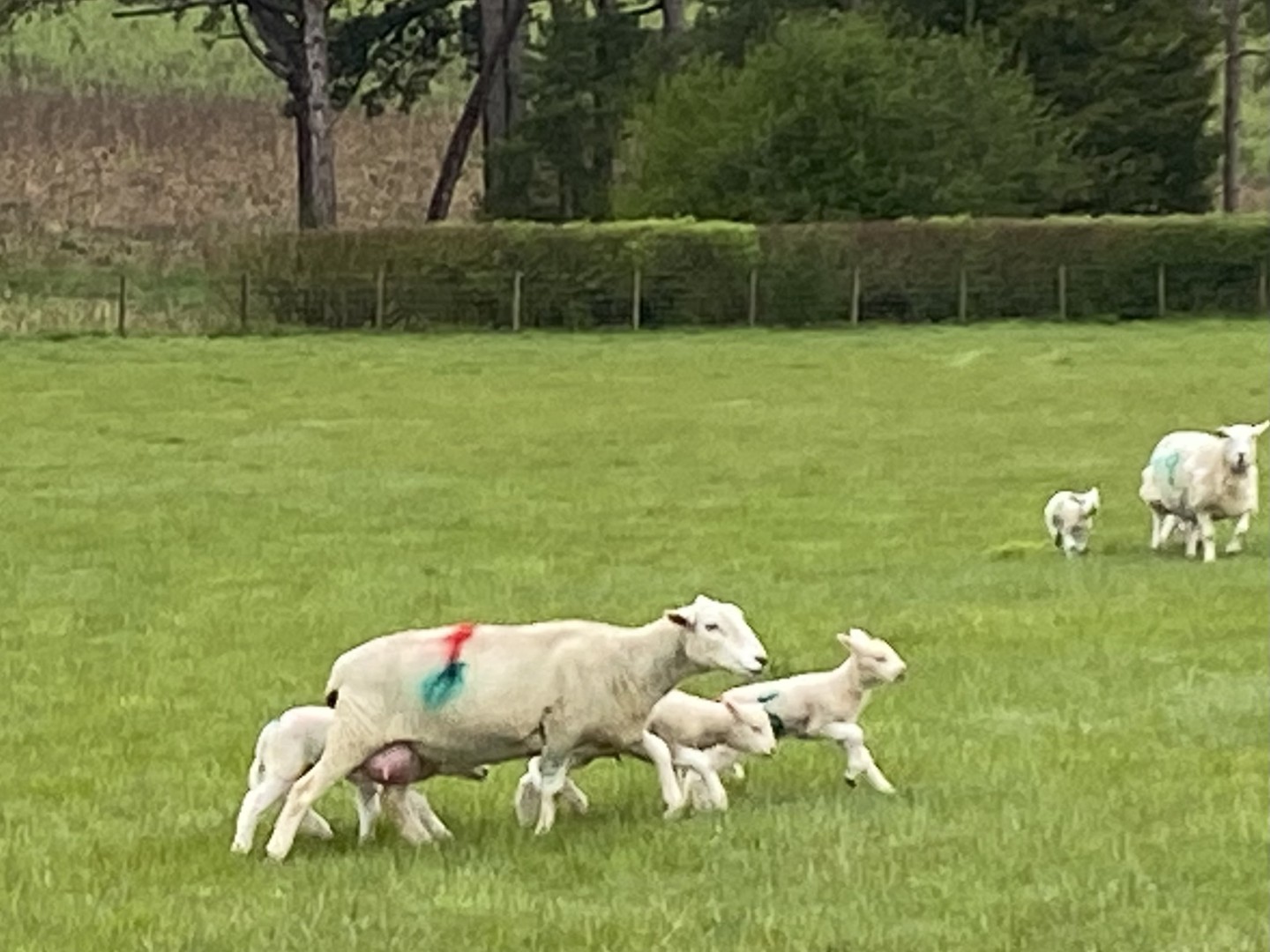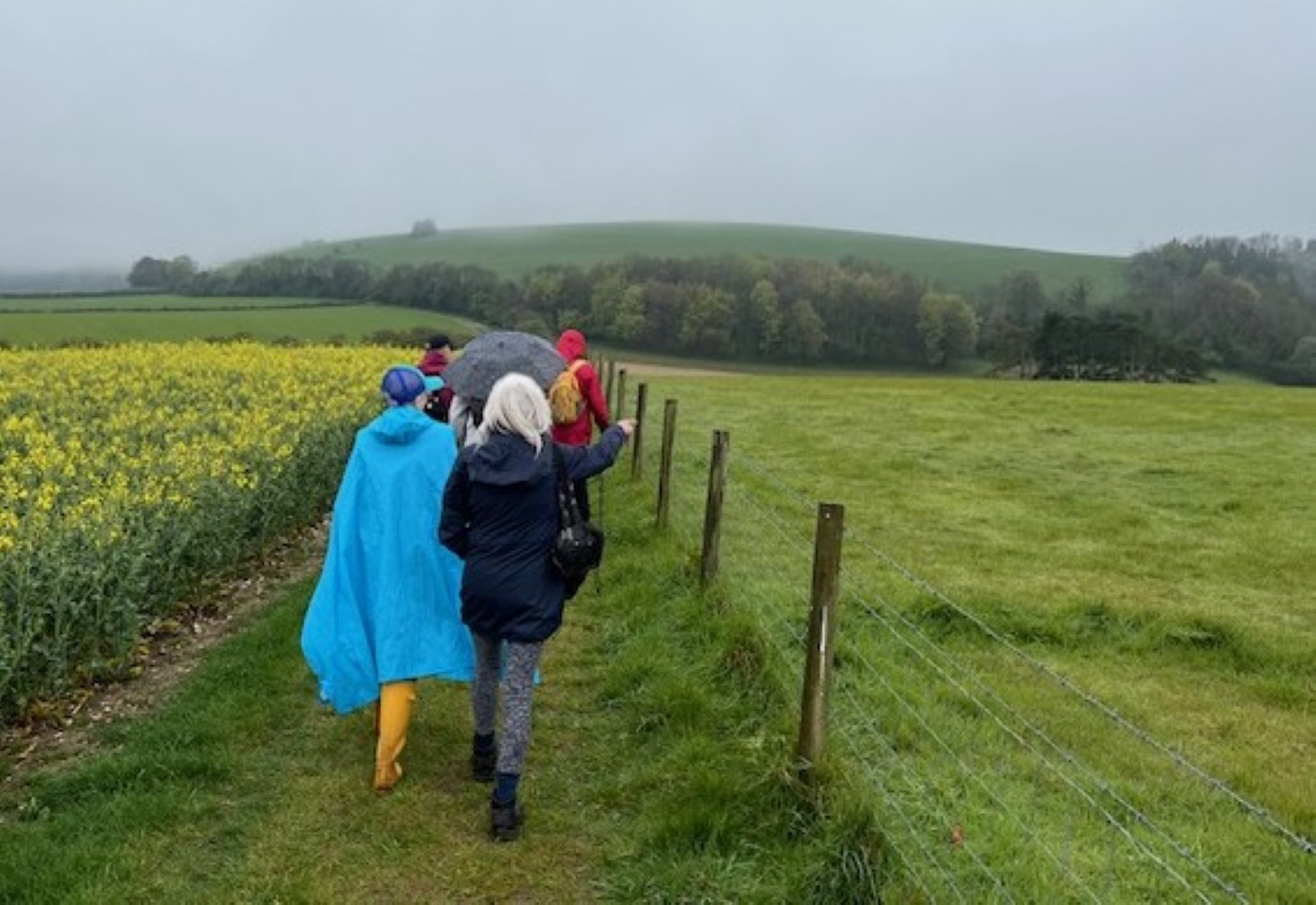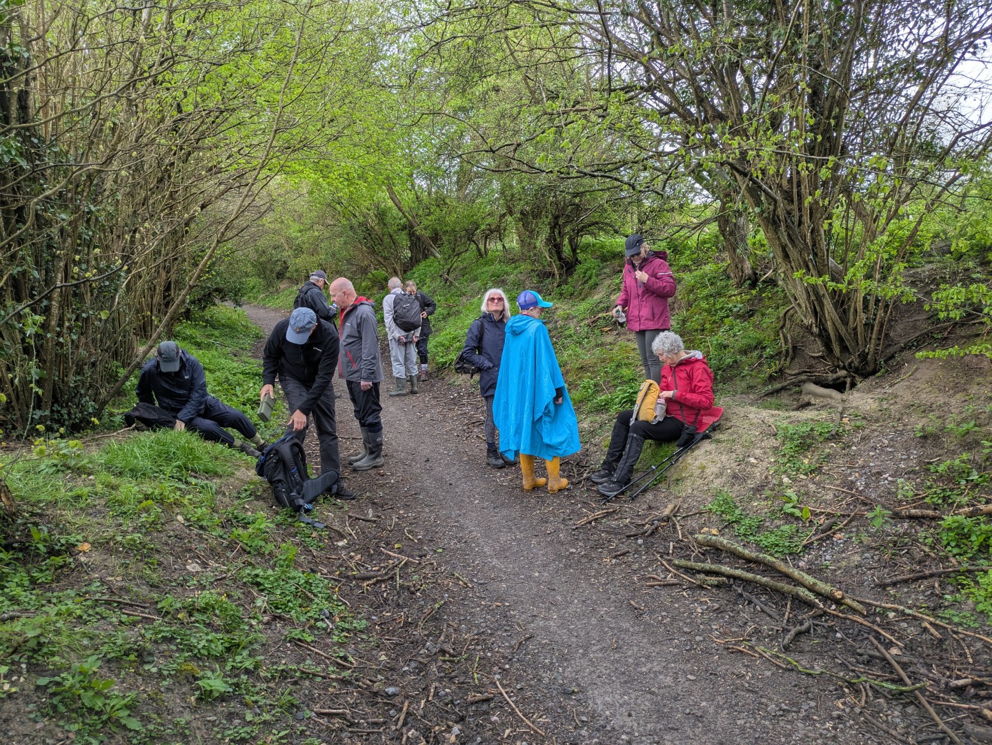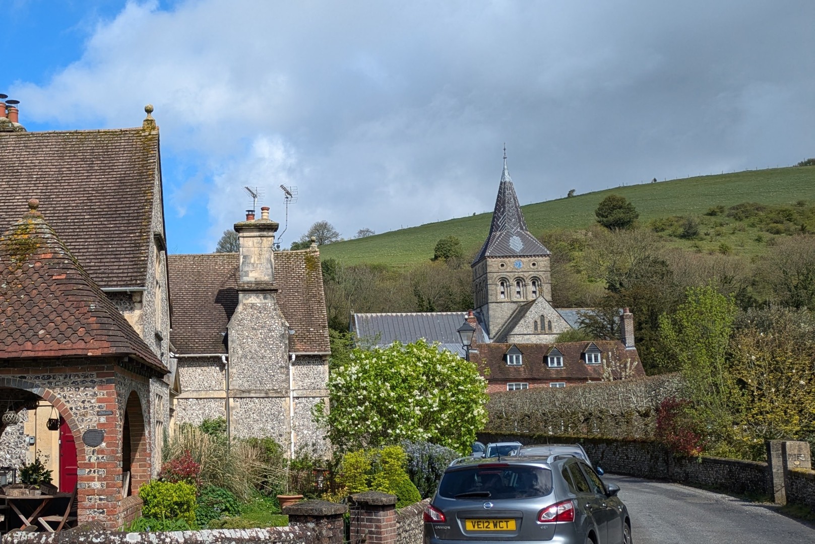 The weather was definitely not looking good for the start of Tim and Jane's walk around East Meon. Rain was very much in the air but by the time we had pre-ordered our food the drizzle was fading away and we headed to the south of the village, passing the school on the way. Duncoombe Farm proved to be the birthplace of many lambs and several set of triplets were in evidence. We then had to tackle the very lowest slope of Small Down, just as well as Small Down is in fact fairly large. Carefully avoiding a path that went a lot higher, we descended back down and were back at the level of the valley that the village nestled in. We then had some road work before reaching the Parsonage Farm area. After taking the path past Fishpond Cottages and despite a lot of searching we failed to find a coffee stop until we were halfway up Cumber's Lane. Even then we were forced to sit on the bank, but at least we had a pleasant drink! Suitably refreshed we took the path through Greenway Copse and on to the the outskirts of the village. East Meon is a very old settlement and some Hall Houses are still standing but fortunately the original design with a single fire and hole in the roof to let the smoke out has been very much improved over the years. A wander down the High Street and we were soon back in Ye Olde George Inn for a very good lunch.