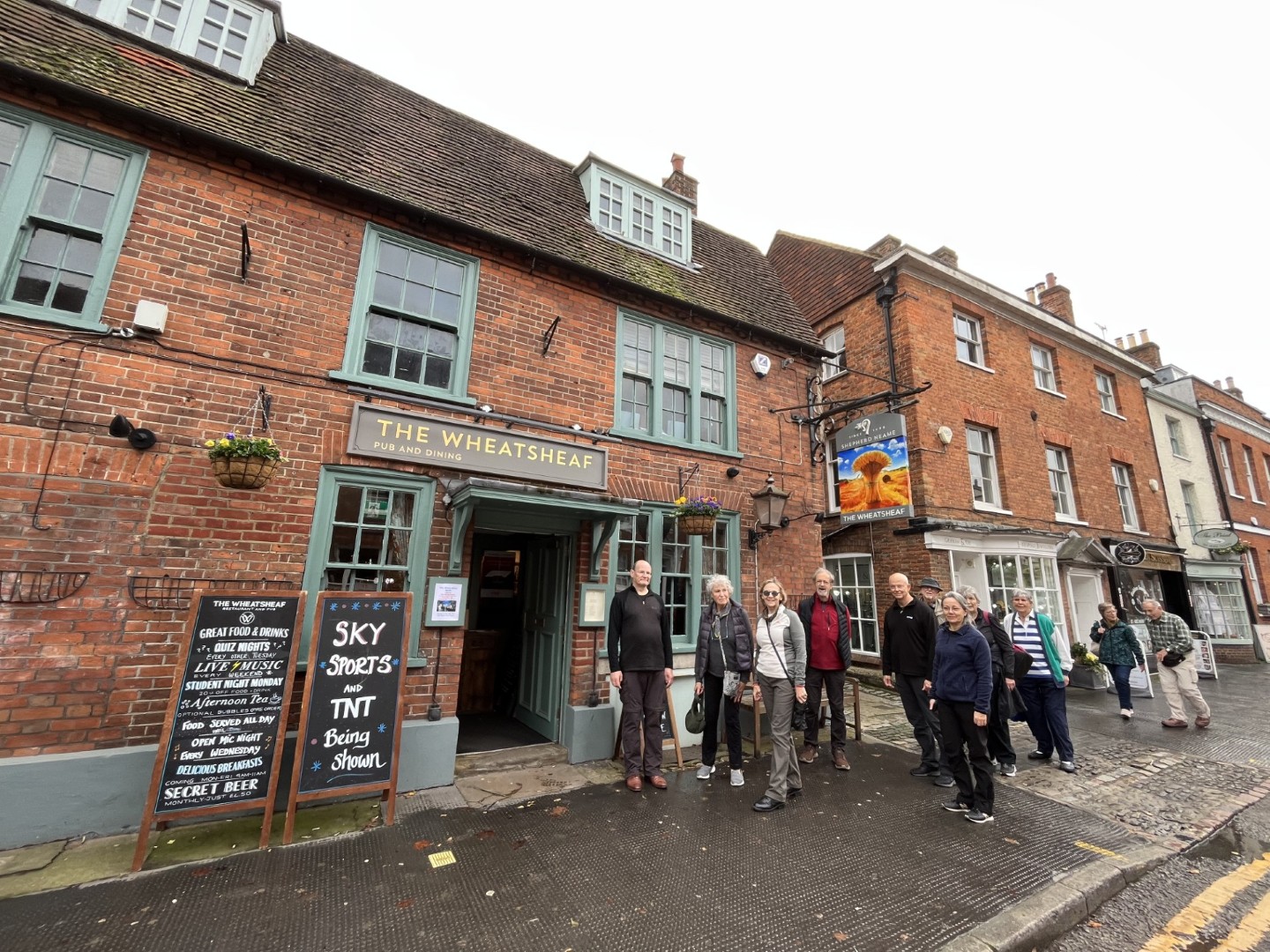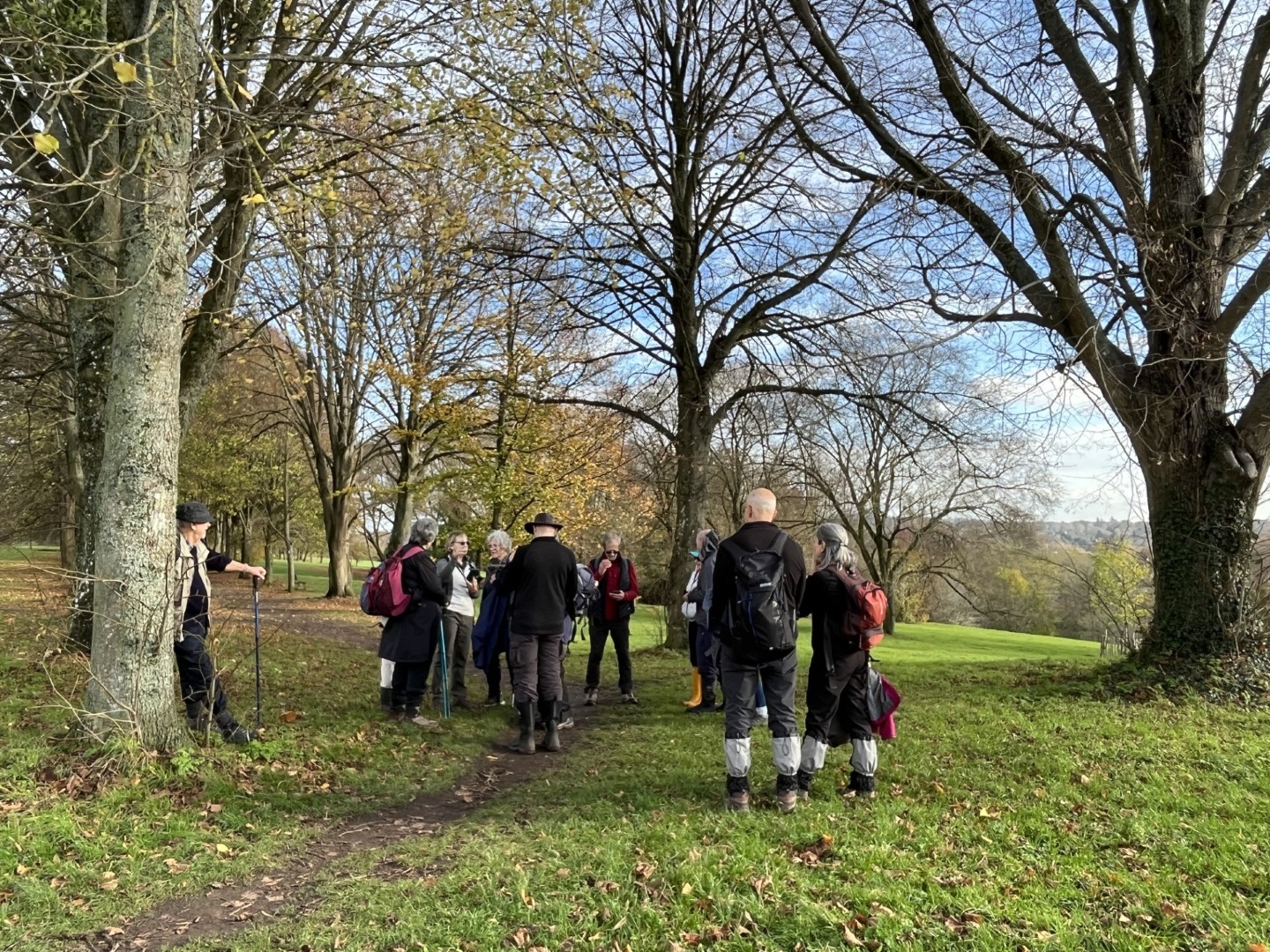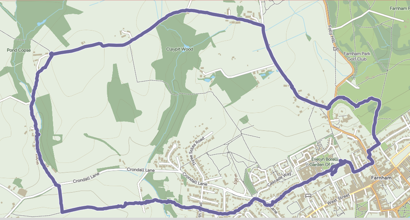 We met at the Long Garden Way car park, starting our 4.5 mile walk along Beavers Road past the University for the Creative Arts, turned into Waynflete Lane and onto the footpath across fields towards Dippenhall. We turned north, crossed Crondall Lane along the fields past Burles Farm and reached St Swithun’s Way, stopping for our coffee break near Lower Old Park. St Swithun was buried in Wincheter but after Becket's death in 1170, pilgrims then wanted to go to Thomas Becket's shrine in Canterbury, so a stop in Farnham along the 112 mile route was most convenient. We stayed on St Swithun’s Way along roads and paths through fields and past Claypit Wood coming onto Old Park Lane and Castle Hill, around Farnham Castle and Farnham Park. Farnham Park is a 320 acre medieval deer park founded in about 1376, with an impressive 1km tree lined avenue. It was used by the Bishops of Winchester who received many important royal guests and the deer park was often the hunting ground of royalty. Luckily the Winchester Bishops now live in Winchester and more recently have concentrated on infighting rather than deer hunting. We then walked clockwise around the Castle until we found ourselves back in Farnham town and adjourned to the Wheatsheaf Pub for our lunch.