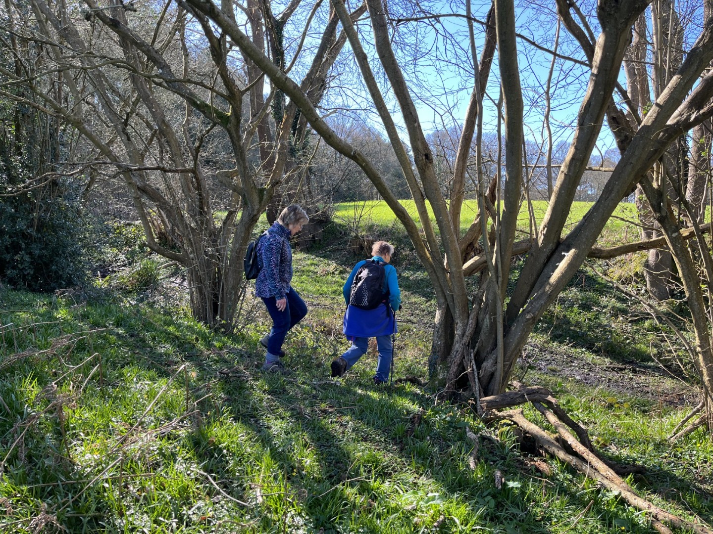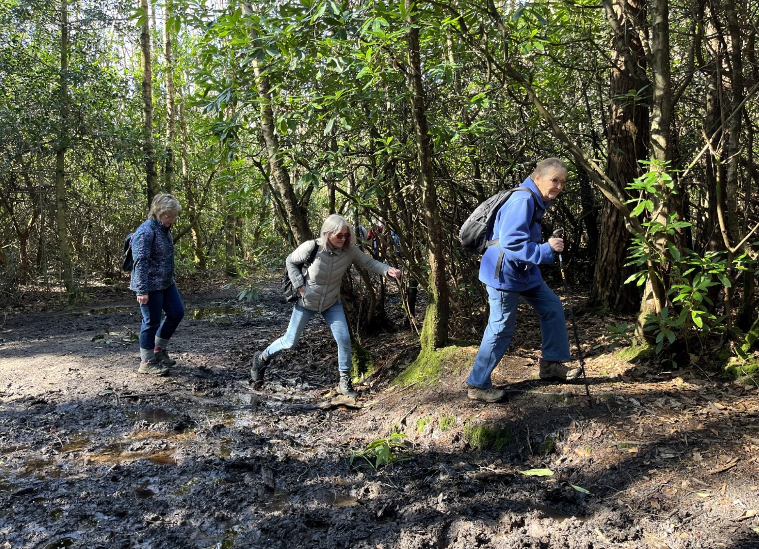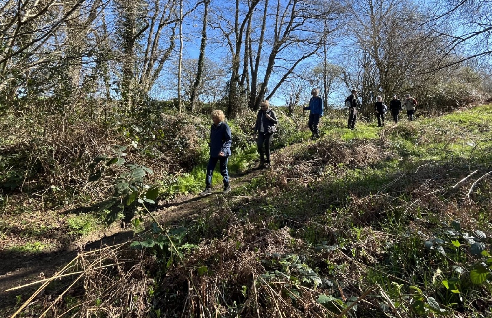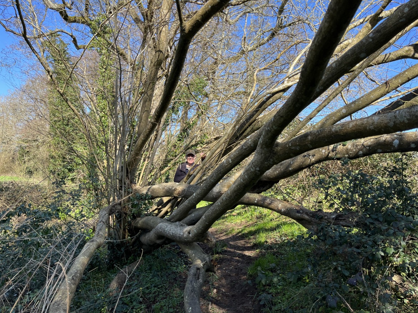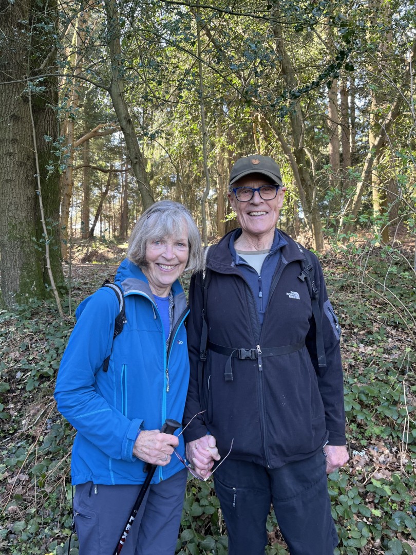 Sally and Robert enticed a good size group for their 4.2 mile walk in the balmy sunshine. We made our way from the National Trust Car park across Lavington Common onto Duncton Common through woodland and heath on the Serpent Trail. Leaving the trail to head north west on the footpath closer to the River Rother where the rainwater saturation of the soil over the past two months necessitated us making local diversions to keep our feet dry. Skirting fields we came to the track leading to Fitzlea Farm and the bridleway into Fitzlea Wood where we stopped for our coffee break. Crossing the Selham to Heath End road we continued the gentle climb onto Graffham Common with a steeper climb to reach the Serpent Trail again. On reaching Gallows Hill, we thought the miscreants probably had other things occupying their mind than the scenic views as we wandered past Bronze Age barrows (dating back to the period 2400-1500 BC), down the hill to the road at Barnett’s Bridge. Reaching Lavington Common, the path was very muddy until we got to the sandy elevated section and back to the car park. We drove around the corner to the Badgers pub for a lovely lunch.