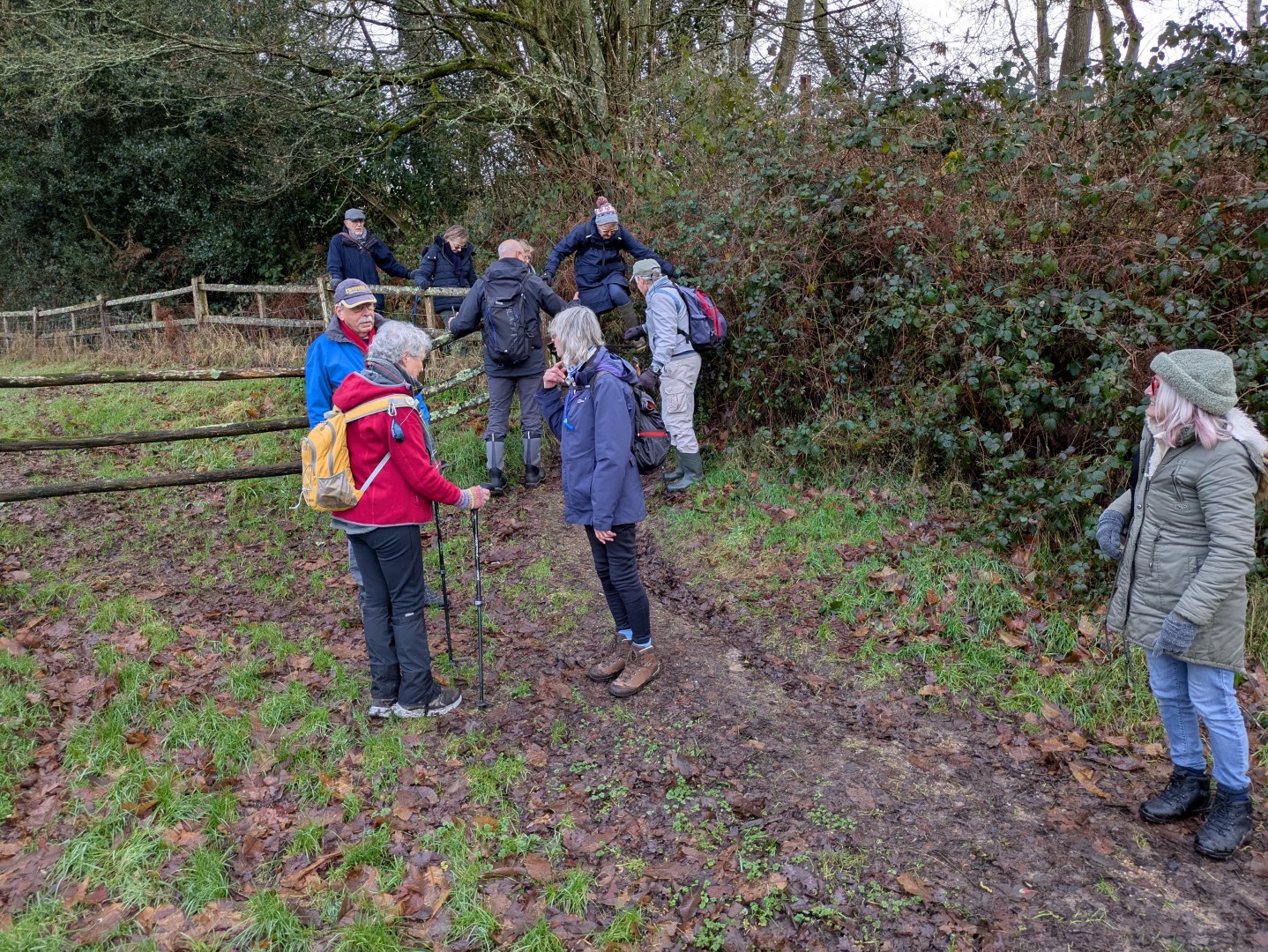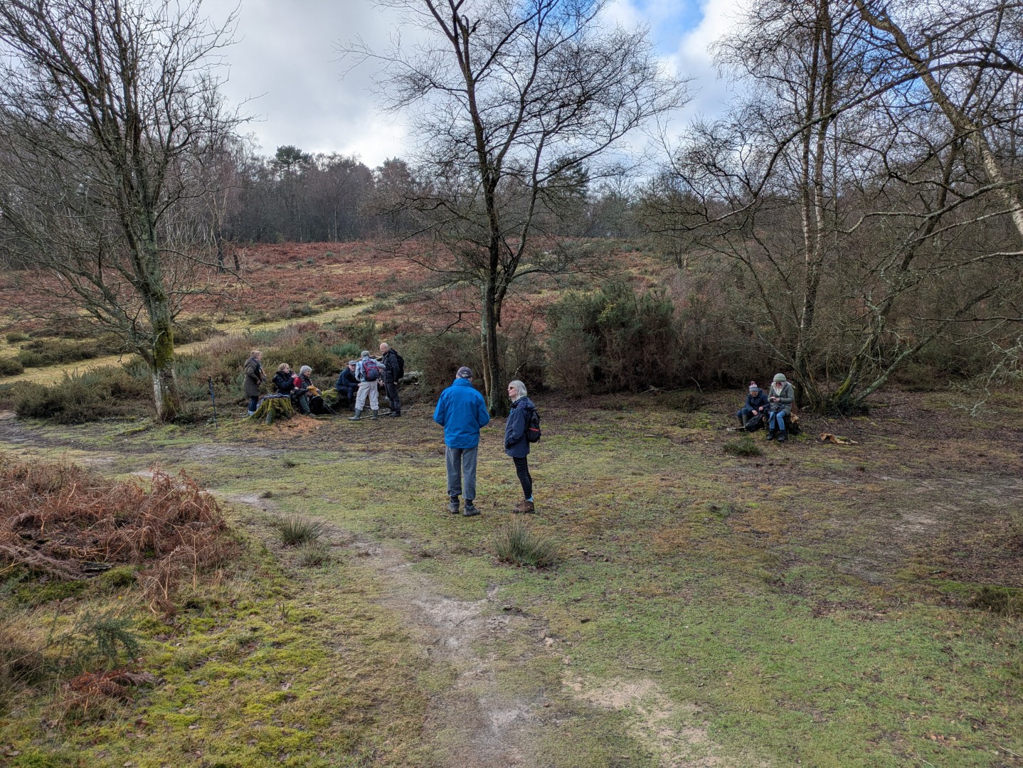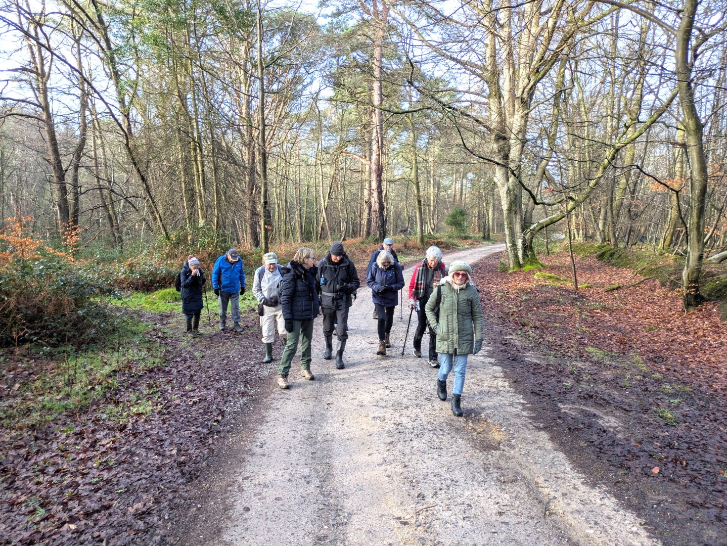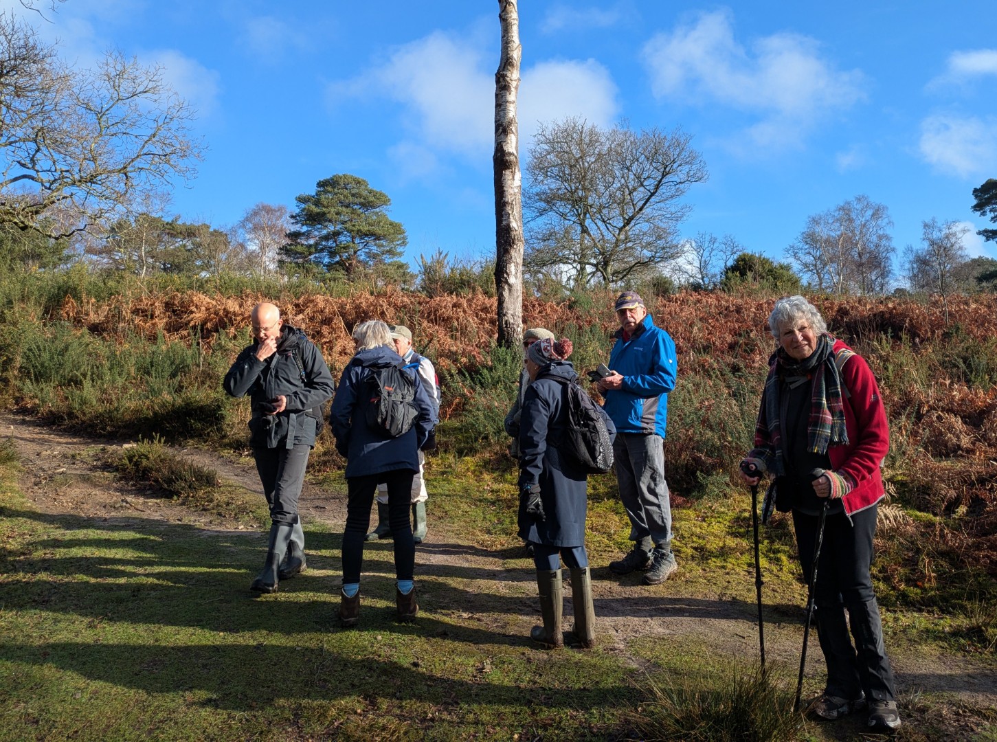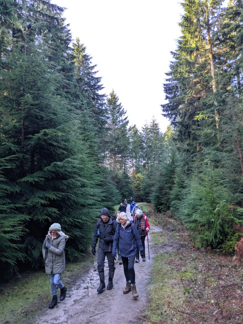 We gathered together in the Iron Hill car park near Hollycombe for Jay's adventure over Lynchmere Common. The recent weather for at least a week had been historically wet but our walk ended up being virtually dry all morning. After welcoming a new walker, we set off through the conifers, following The Serpent Trail and the Sussex Border Path northwards. We eventually turned east, passing Danley Farm, originally the home of the Dimbleby broadcasting family. The area must be a little special as the first rooftop we could see through the trees was the childhood home of Rachel Portman, the first woman ever to win an Oscar for Best Soundtrack. We continued up hill and down dale through to Linchmere Common and The Ridge. After a muddy walk through to Lynchmere village we took a path down to Poison Copse where we had to deal with a couple of stiles, then onto Stanley Common and eventually back to our cars. Road works made it exceptionally difficult to reach the Deers Hut but fortunately the food was worth the effort.