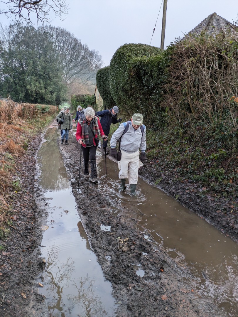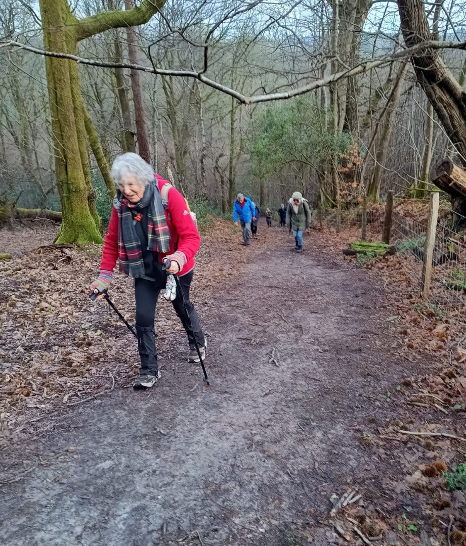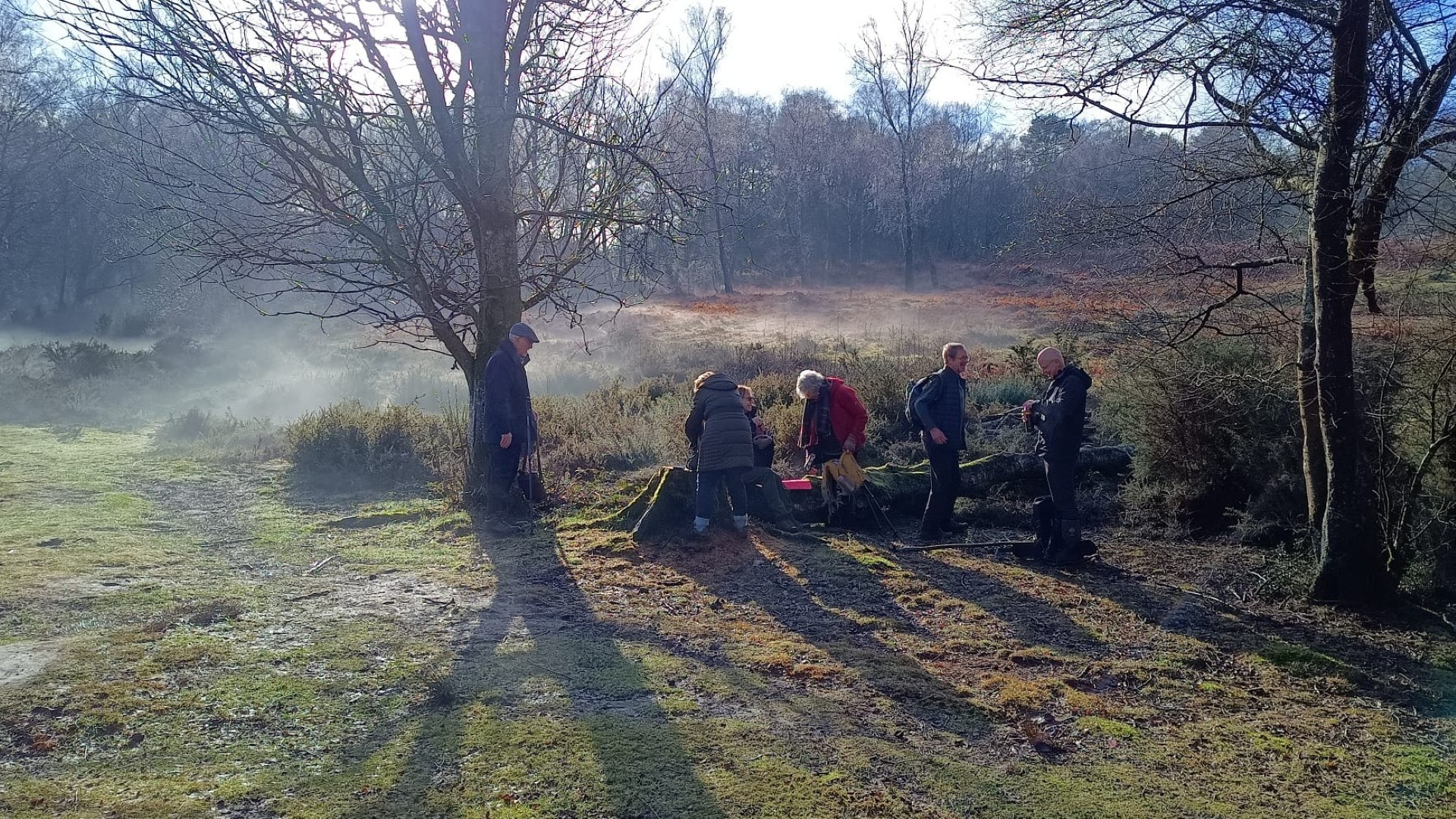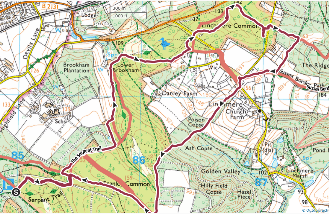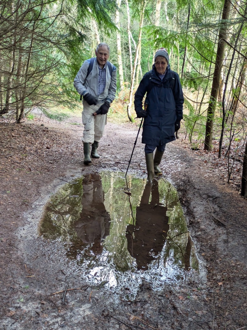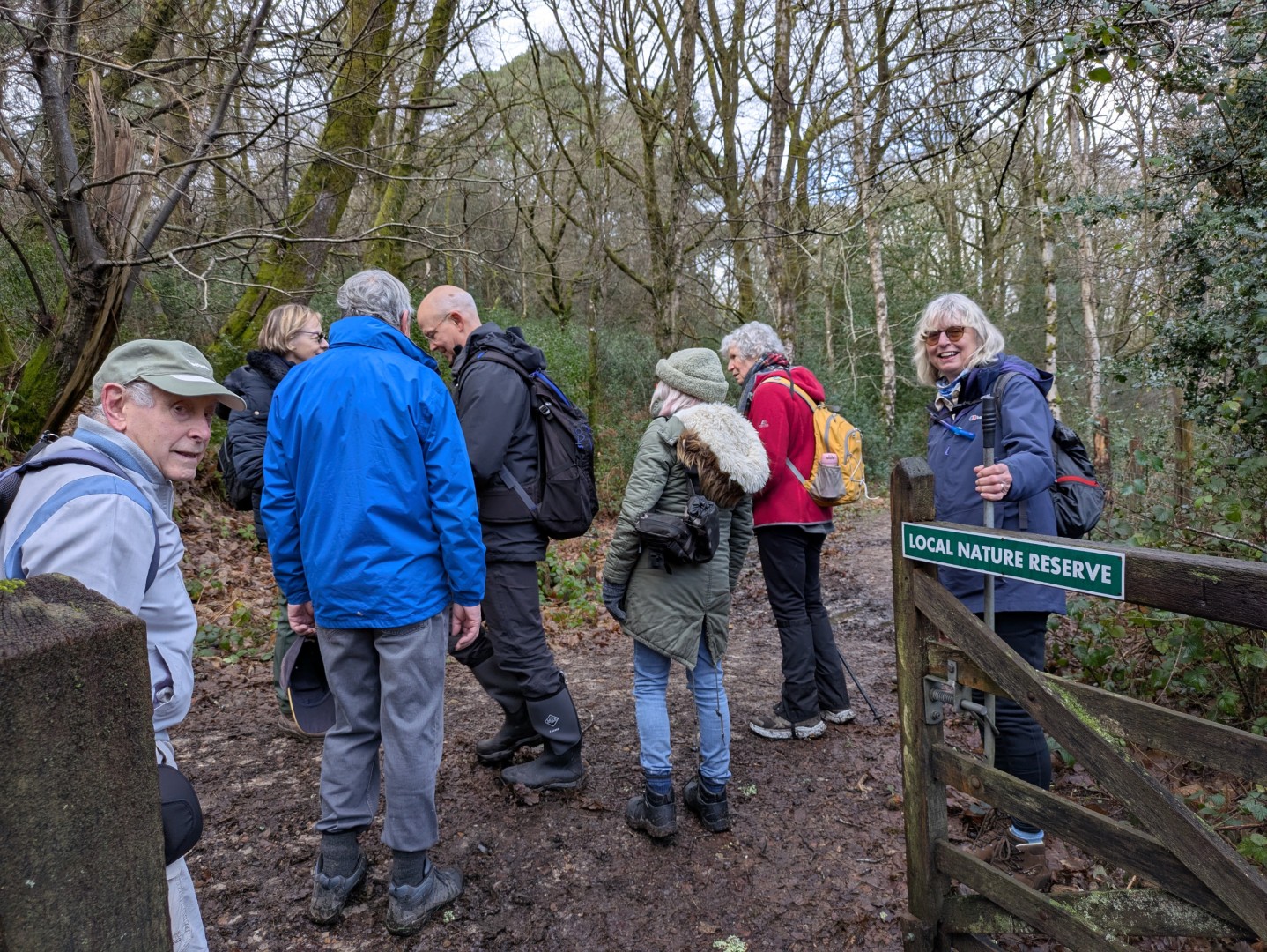 We gathered together in the Iron Hill car park near Hollycombe for Jay's adventure over Lynchmere Common. The recent weather for at least a week had been historically wet but our walk ended up being virtually dry all morning. After welcoming a new walker, we set off through the conifers, following The Serpent Trail and the Sussex Border Path northwards. We eventually turned east, passing Danley Farm, originally the home of the Dimbleby broadcasting family. The area must be a little special as the first rooftop we could see through the trees was the childhood home of Rachel Portman, the first woman ever to win an Oscar for Best Soundtrack. We continued up hill and down dale through to Linchmere Common and The Ridge. After a muddy walk through to Lynchmere village we took a path down to Poison Copse where we had to deal with a couple of stiles, then onto Stanley Common and eventually back to our cars. Road works made it exceptionally difficult to reach the Deers Hut but fortunately the food was worth the effort.