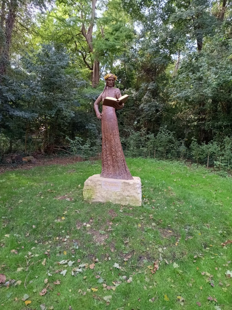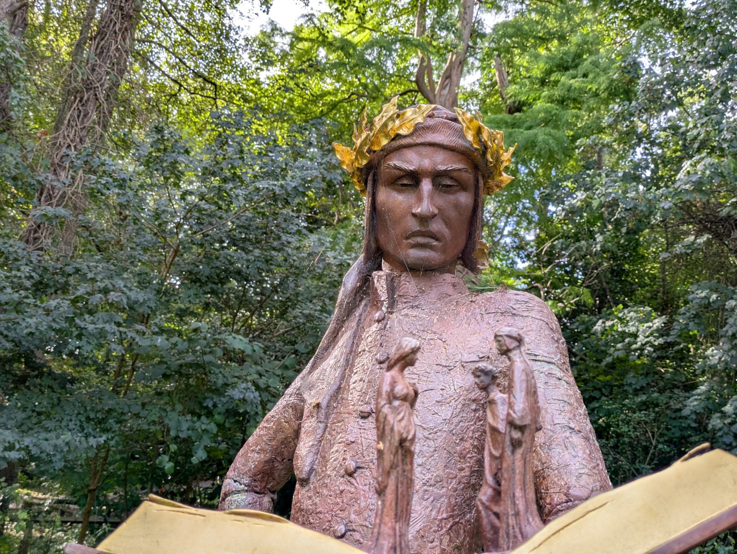 Dante, by Philip Jackson holding a copy of his poem "Divine Comedy" describing his search through Hell and Purgarory to find Paradise