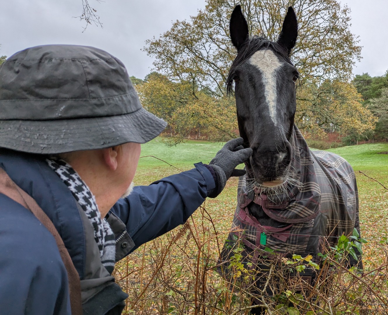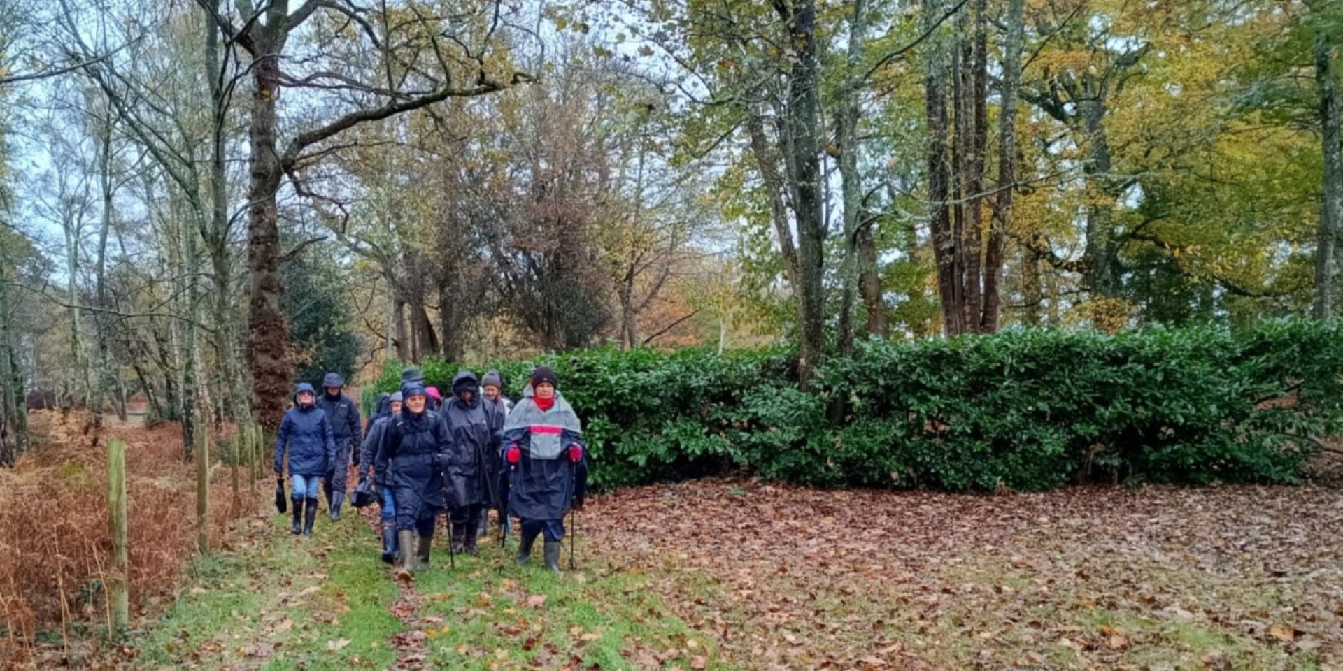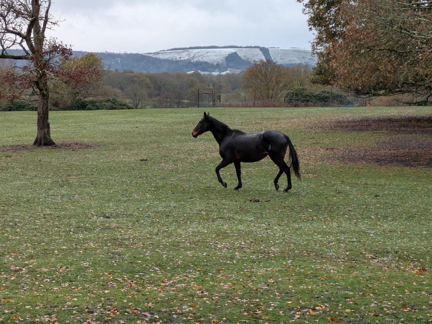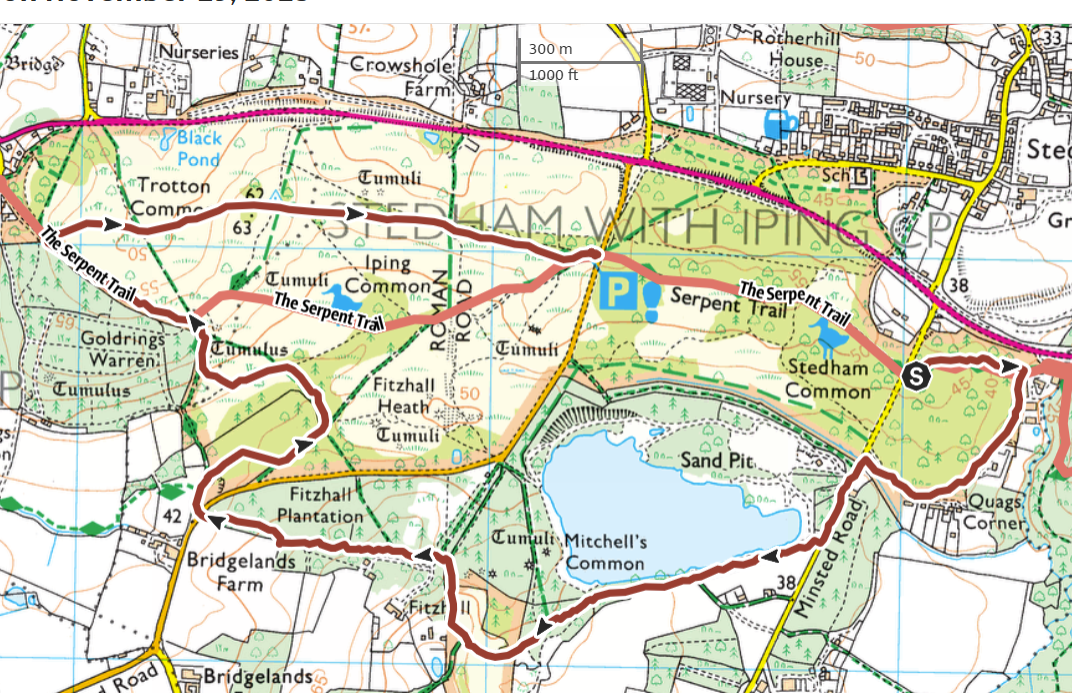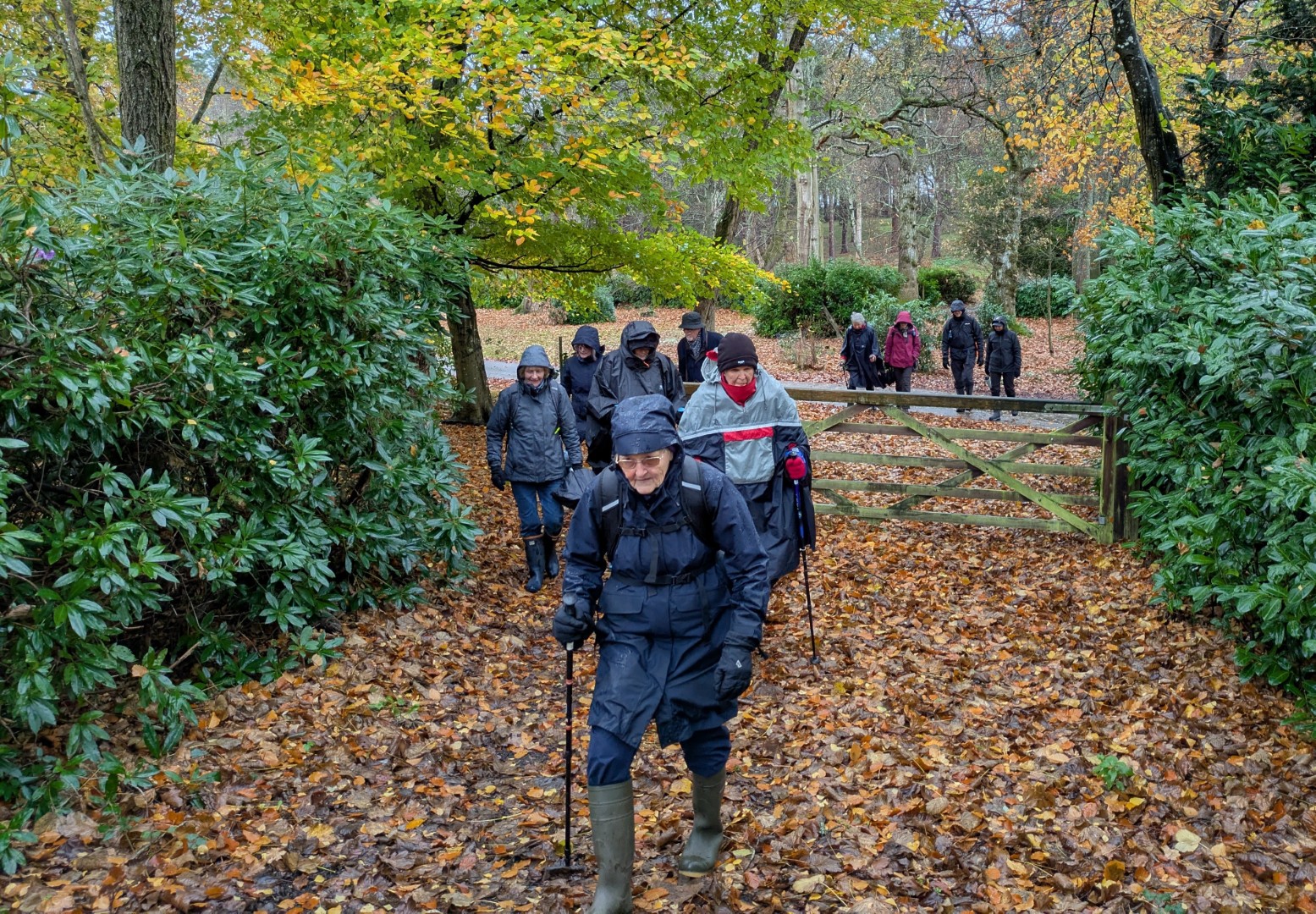 Arriving at Iping Common car park we huddled in our cars hoping that either the snow would stop or Isabel was going to change the walk to many, many circuits of the bar at the Hamilton Arms before lunch. However, after girding our loins, finding our umbrellas and dressing appropriately, we embarked on our walk. In the event the snow stopped in less than half an hour, so we had made the right decision, although it was replaced later by some rain. After taking the Serpent Trail over Stedham Common, we headed for Woolmer Bridge but then headed south for Quags Corner near Minsted - not to be confused with the Quags Corner near Horsham. Quag is an archaic term for a marsh or bog, but in spite of the earlier snow we found it reasonably easy walking. We then followed the fence shielding us from the extensive sandpit on Mitchells Common and eventually emerged at Fitzhill where we could see snow had settled on Harting Down. A field with a few horses in it showed no sign of snow but the horses looked cold and damp and disappointed we had no food for them! After crossing the Elsted road we soon found a suitable stopping point for a drinks break. Suitably refreshed, we skirted the edge of Trotton Common before eventually turning east and then reaching Iping Common and our parked cars. In spite of the weather we found the walk very rewarding. After a short drive to The Halmilton Arms anyone suffering from the cold weather soon warmed up and we all had some delicious Thai food from the extensive menu.