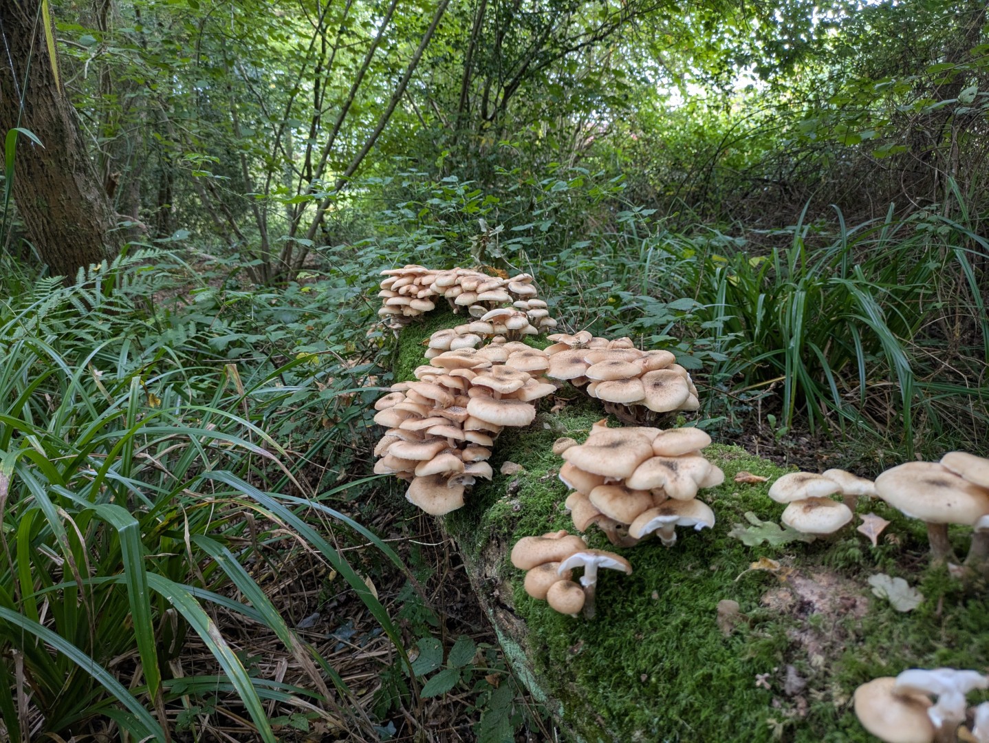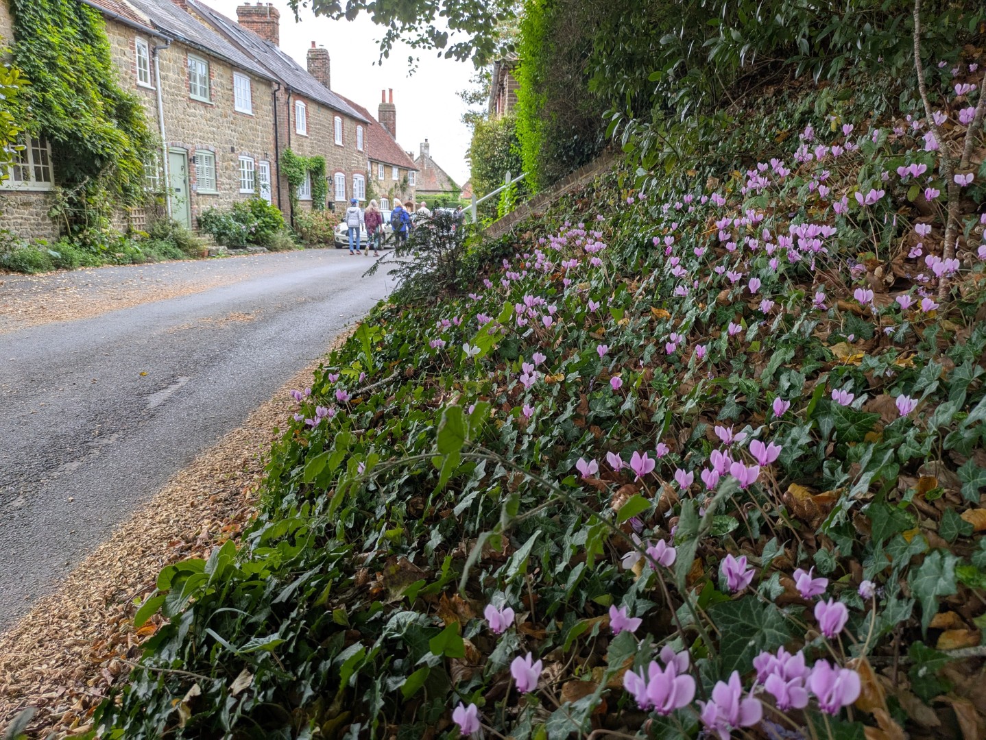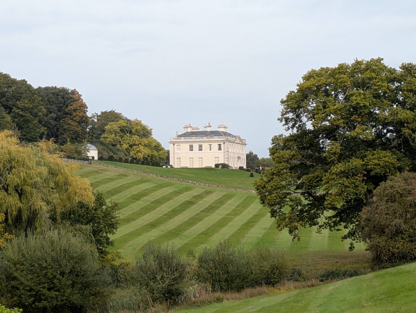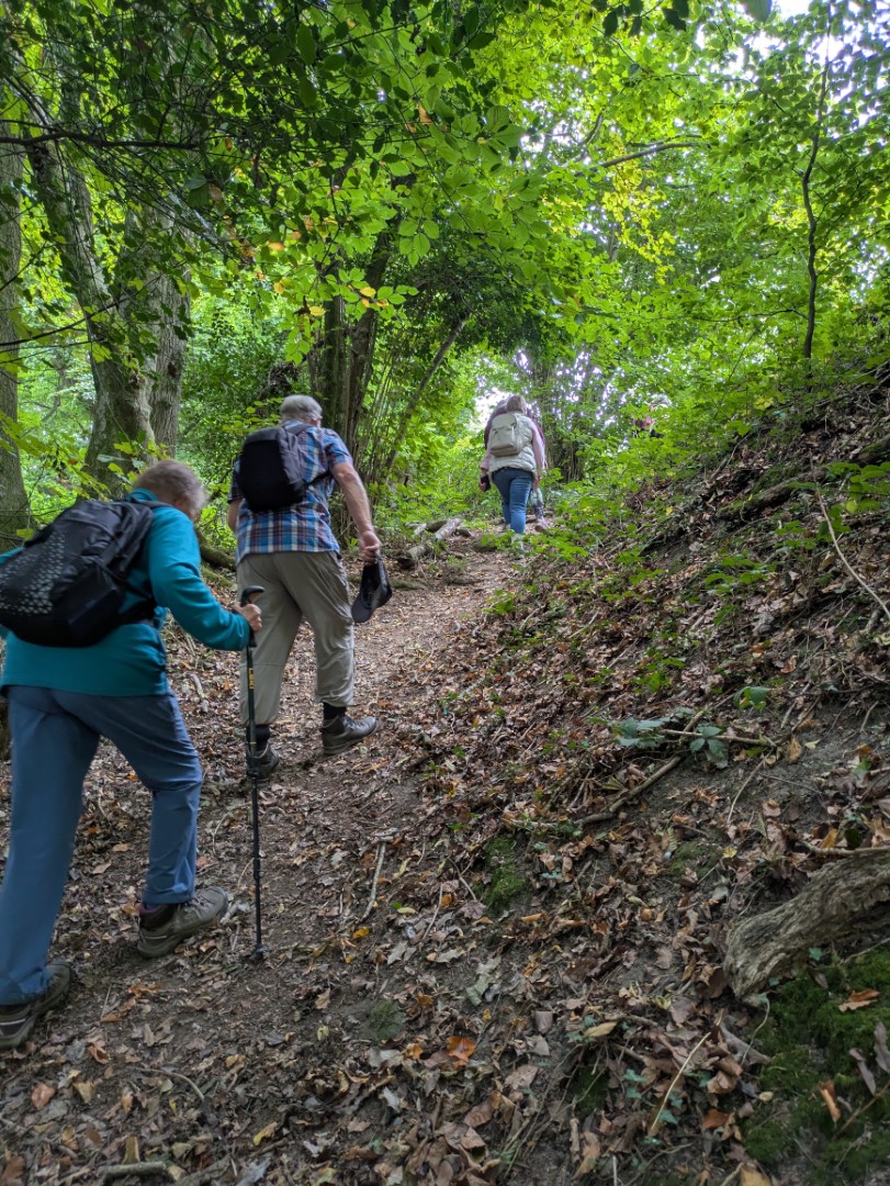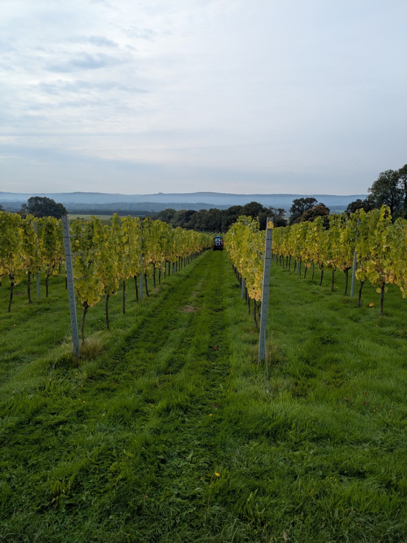 The walk led by Jay and Lindsey started from the road near the Tillington pub and headed south and east towards the cemetery. Not at all wishing to stop there, we headed north along the Sussex Diamond Way, passing through acres of vineyards, with grapes being harvested in the distance. We soon came to view the wonderful mansion called Pitshill. Building was complete by 1794 but the house was in poor condtion by 2010. After refurbishment, seven years later the building work was finished, including restoring the Shell House, a circular domed garden pleasure building allegedly decorated by the Mitford sisters, Frances, Emma and Caroline. The other sisters had remarkably political lives (Diana married Sir Oswald Mosley, Jessica, a communist who moved ot the U.S) so perhaps the shell decoration helped calm them down. See here :- Mitford family