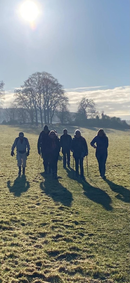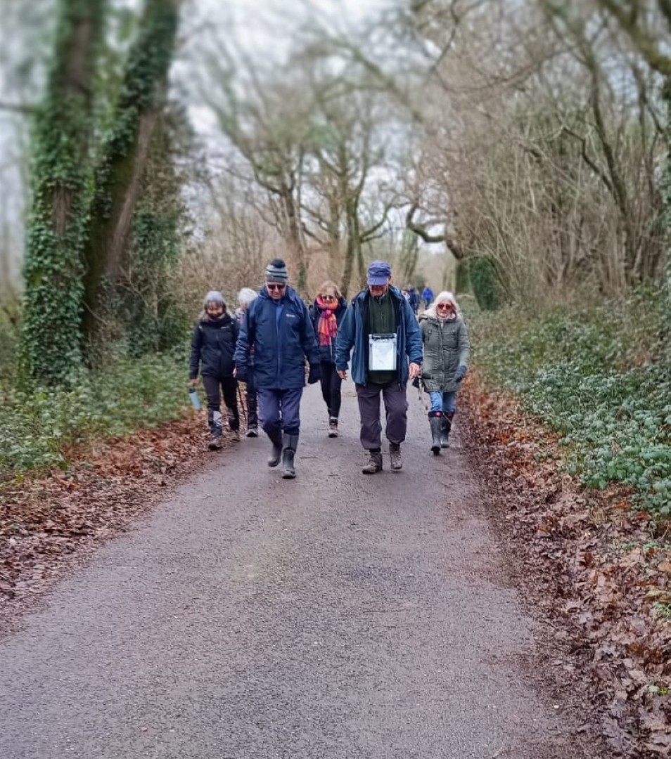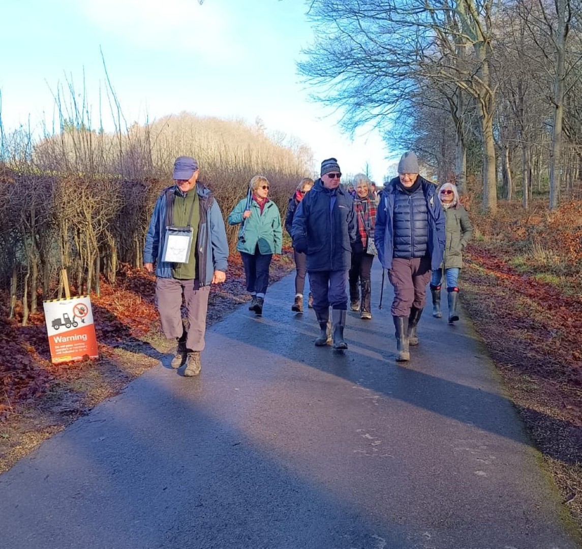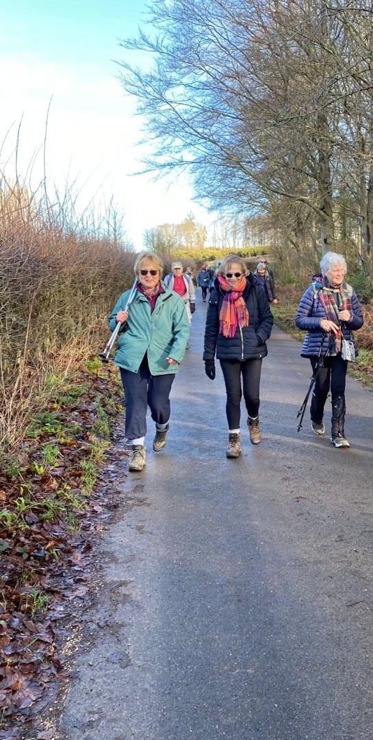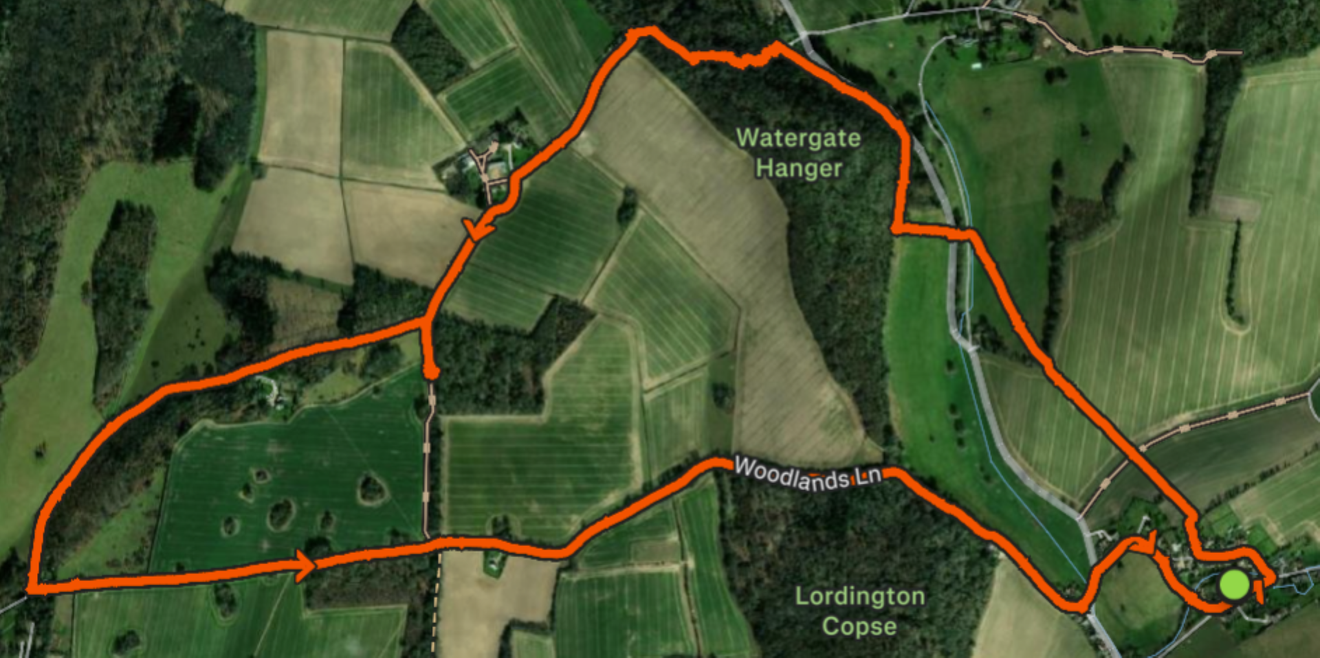 Even with a frosty start there were a good number of eager walkers gathered at the Barley Mow in Walderton for John's 5 mile walk. We were promised a steep climb but had to first pass Watergate. Watergate Park has nothing to do with Richard Nixon or even Watergate Forest near Gateshead - the house is just a rebuild from the latter part of the last century. However the name actually dates back to the 13th Century. The steep climb came shortly afterwards as we had to ascend Watergate Hanger, however we all made it without incident, emerging at the top in bright sunshine. After passing Broadreed Farm we found the ideal spot for a drinks break adjacent to Oak Copse, the Copse having donated a large number of suitable seats. Suitably refreshed we skirted past Lumley Wood before taking a turn east onto the Monarchs Way. This route was an excellent choice as it led us back to The Barley Mow and all the hills were downwards. The new licensees looked after us very well, especially as we had all seemed to have chosen a different meal.