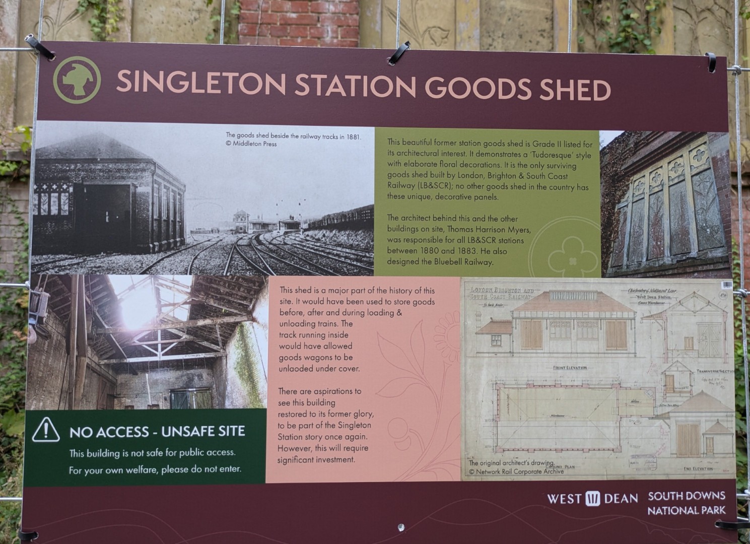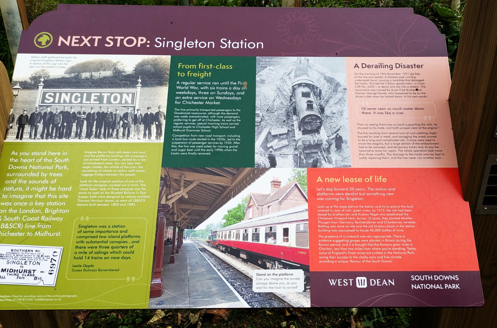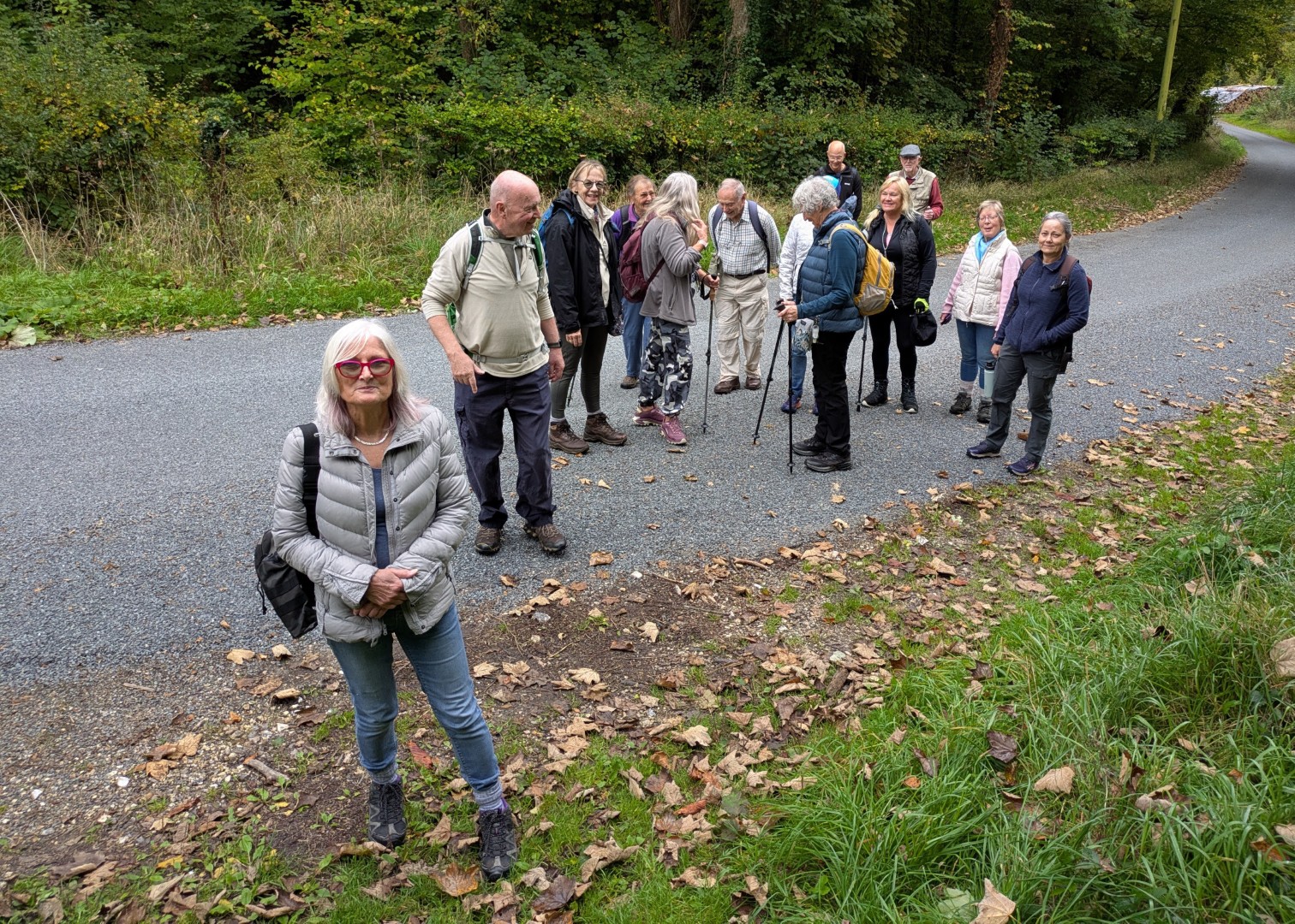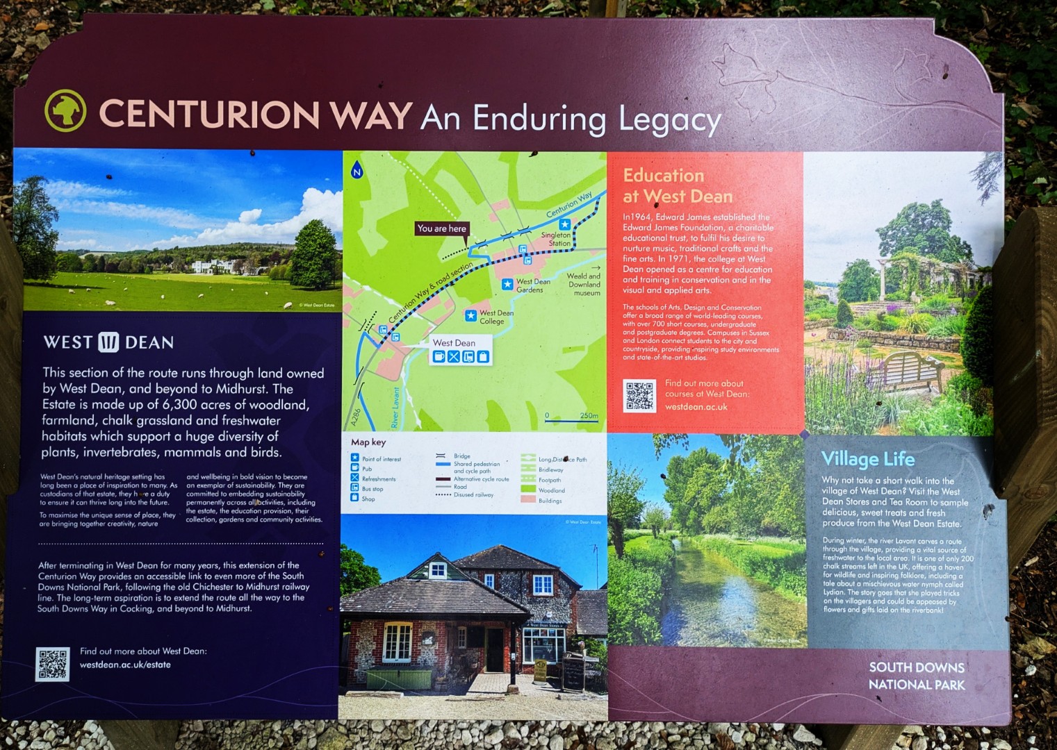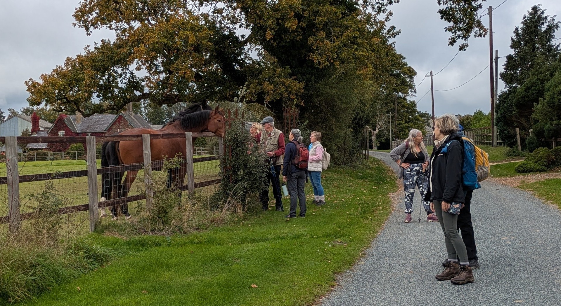 Having ordered our food in the Selsey Arms we set off on Mark and Jo's walk to find the Centurion Way and a few other places in between. We were warned of the long hill early on in the walk but we all survived the climb up through Whitedown Plantation before emerging onto the road near Lodge Hill Farm. There is a large chalkball in the hedgerow at this point and it turns out this is one of 15 placed between West Dean Gardens and Cocking Hill by the artist Andy Goldsworthy in 2002, to act as waymarkers. They were only expected to last a couple of years but have proved very resilient. An easy walk along a quiet road brought us to a north-westerly track next to Colworth Down where we found what at first glance seemed an ideal picnic spot. It was a pity the warning sign seemed only to apply to folk heading in the other direction! Turning south we passed a lot of building work going on at Colworth Farm before taking a steep hill down to the route of the old Midhurst to Chichester Railway. This now forms part of the Centurion Way. Heading south west we found the site of the original Singleton Station which has been very well restored. Taking the railway route towards Chichester was a good move as we soon found ourselves in the car park back at the Selsey Arms for a very enjoyable lunch.